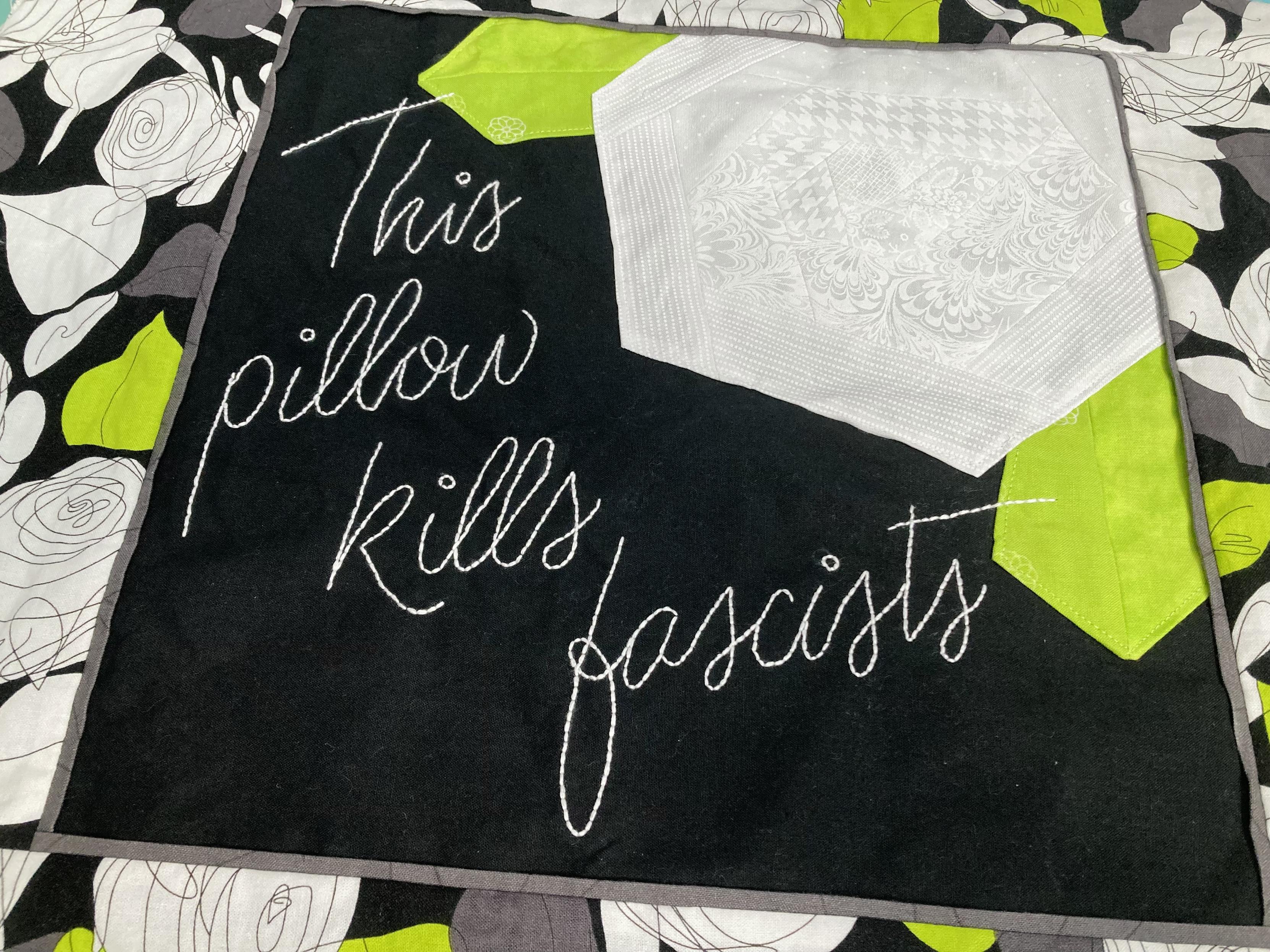 Not sure whether/how I’m going to quilt this. I kind of want it to be more squishy when finished, with that karate chop decorator look to the pillow. Quilting gives it too much body, but maybe I can find a softer batting than I normally use