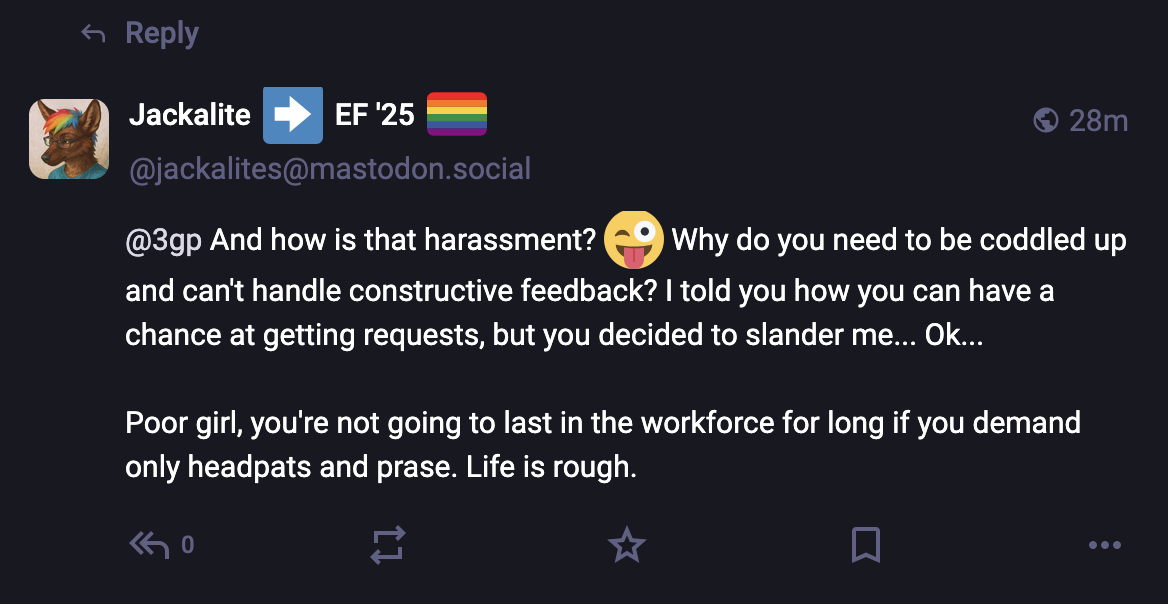 And please, everybody who reads this post and supports me should also report @8124. I want the Mastodon staff to be spammed by hundreds of requests per day until that filthy terrorist is deplatformed.