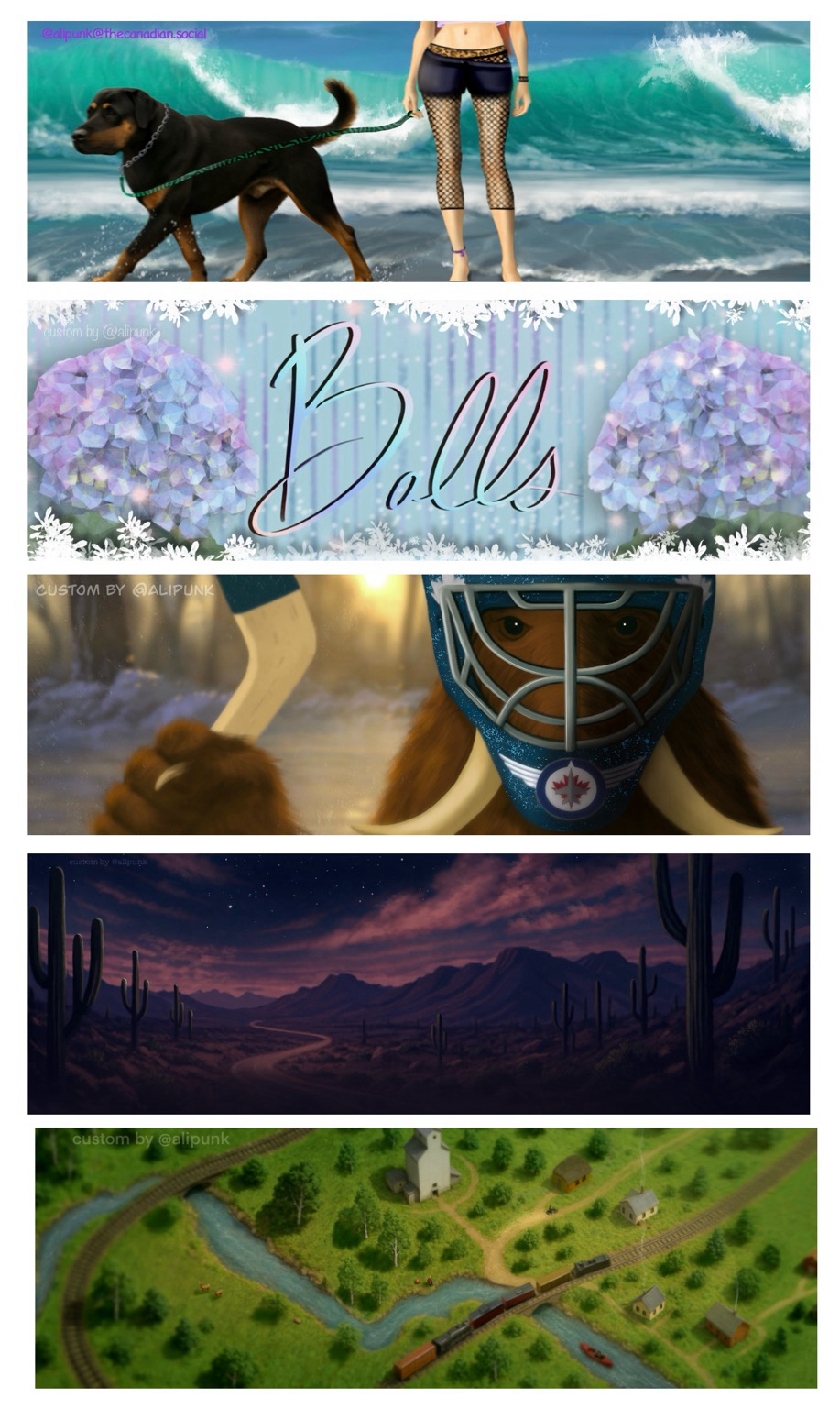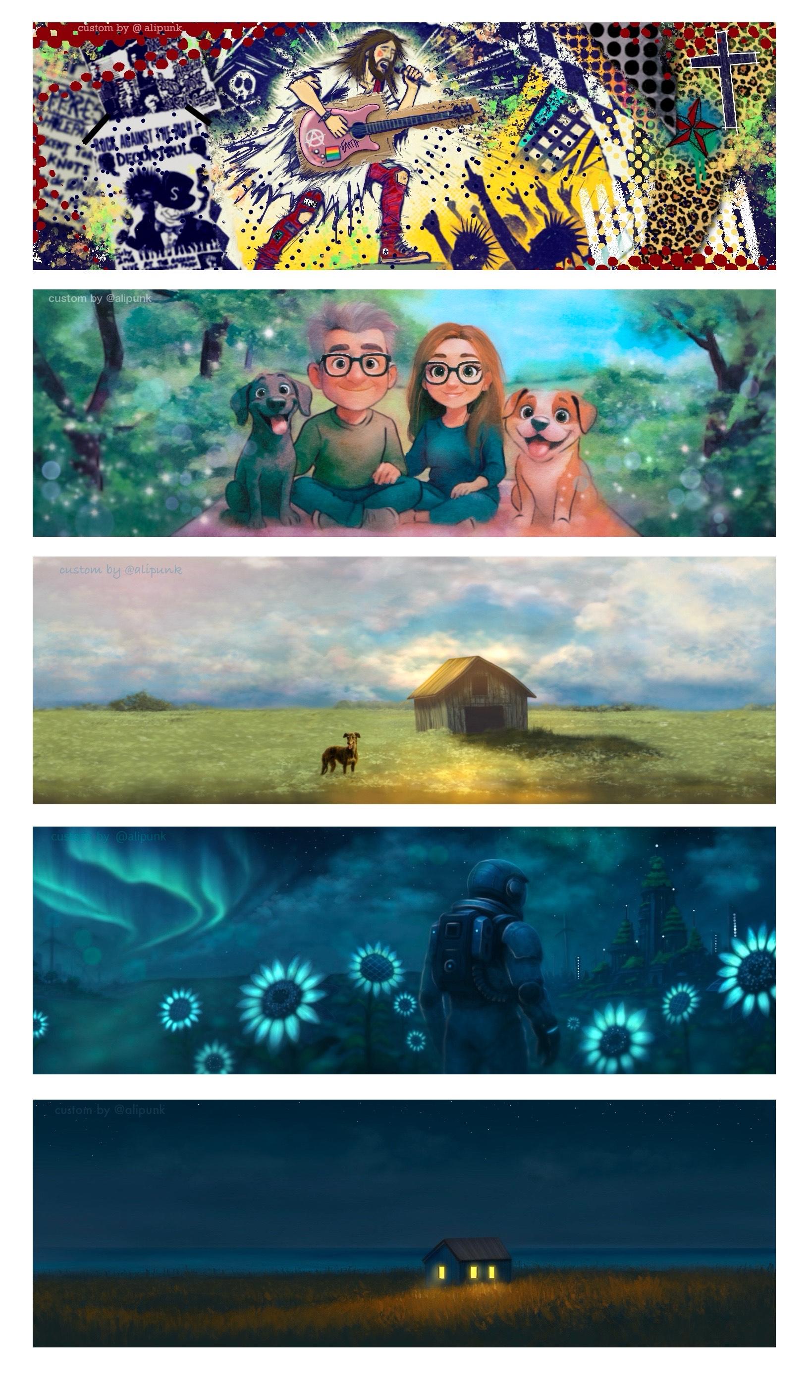 🌟new pics added - Pls boost 🙏 Send me a DM if you would like me to draw you a custom header image. You can tell me what you want specifically, or just a theme and I'll create something for you with procreate. These are some examples of recent ones i made. I love doing this. I have a big , scary quote from the mechanic so don't be shy! $20 Canadian or $15 USD