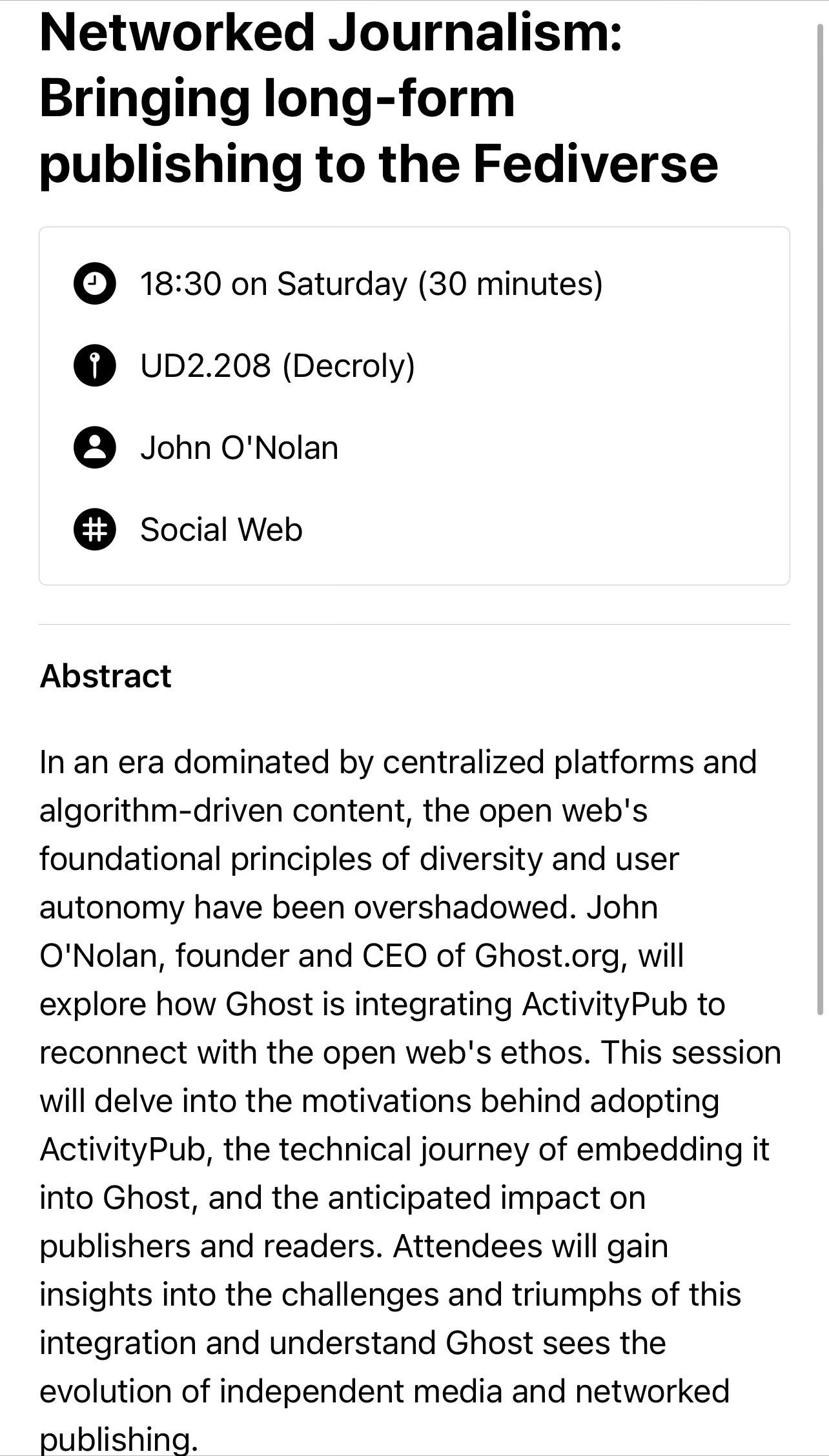 At #fosdem John O’Nolan, CEO of @index announced the public beta of Ghost 6.0 to be launched in march 2025, to add #activitypub federation features to the successful Ghost software, released with MIT license and already adopted successfully by several news organisations. With federation enabled, Ghost will allow the creation of content curation platforms and federated independent news sources aggregating content from the #fediverse,