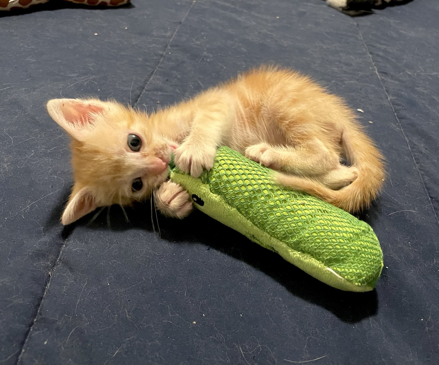 <p>Baby Buddha vs pickle 🧡 <a href="/tags/fosterkittens/" rel="tag">#FosterKittens</a> <a href="/tags/cats/" rel="tag">#cats</a> <a href="/tags/catsofmastodon/" rel="tag">#CatsOfMastodon</a></p>