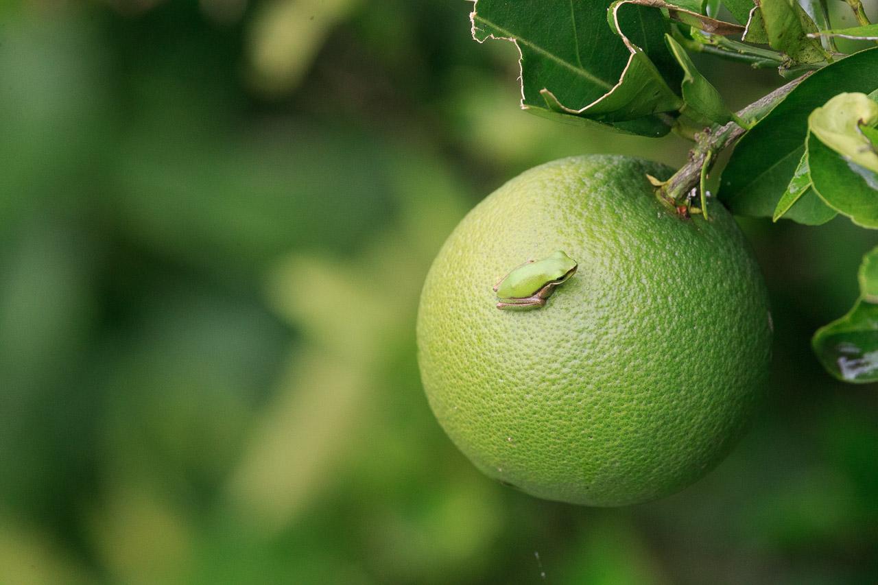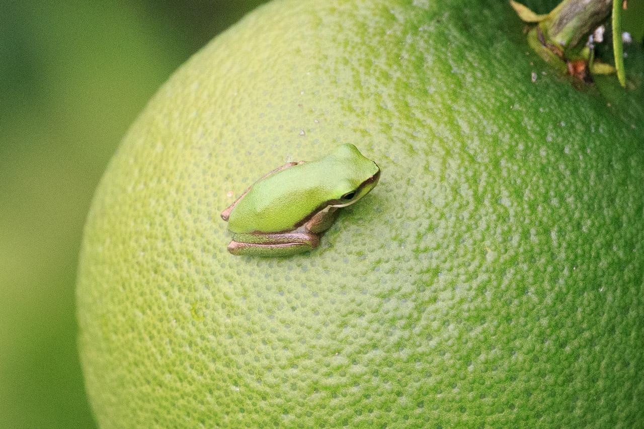 My morning was improved one-hundred-fold by the discovery of this tiny Eastern Dwarf Treefrog on a citrus fruit.