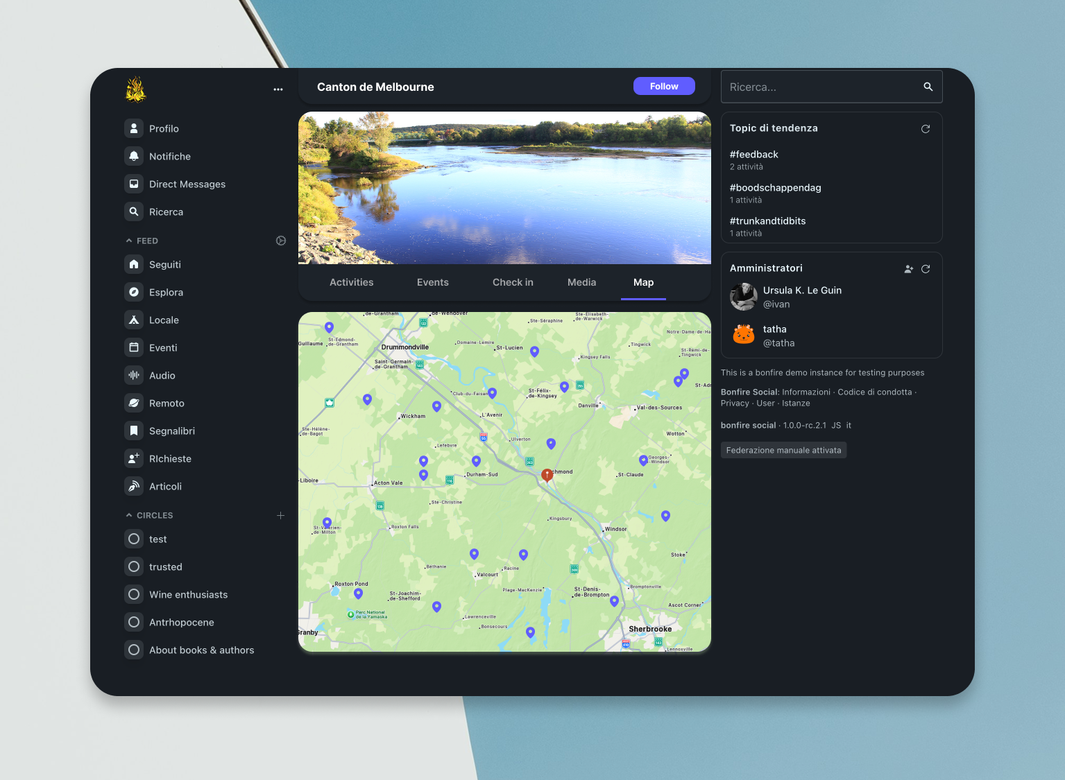 Geosocial activities are part of the core Activity Vocabulary that underlies ActivityPub. But, they’re not as widely implemented as other activities in the vocabulary. This app is trying to change that, by making them available on the network, and making it easy to create them.