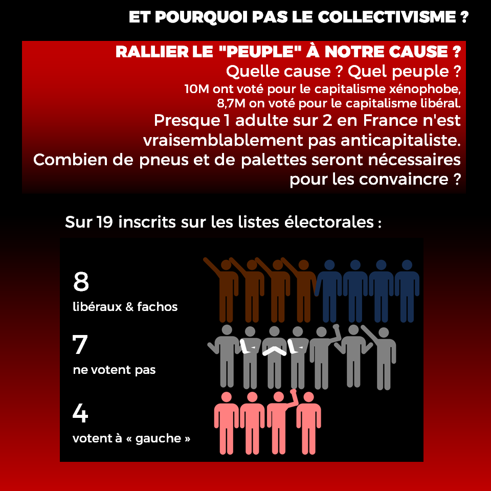 Bonjour à toustes, après avoir lu quelques textes critiques du mouvement de blocage en cours, je me suis demandé s'il ne serait pas chouette qu'à part les actions d'agitprop, il ne serait pas temps de réfléchir à des actions pour le long terme, et visant à construire un vrai autre monde qui donnera envie de rejoindre les rangs de l'anticapitalisme.