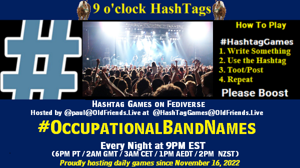 Time For 9 o'clock #HashTagGames hosted by @paul Let's play!