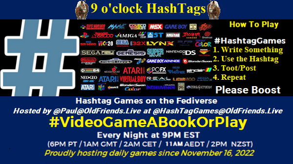 Time For 9 o'clock #HashTagGames hosted by @paul Let's play!