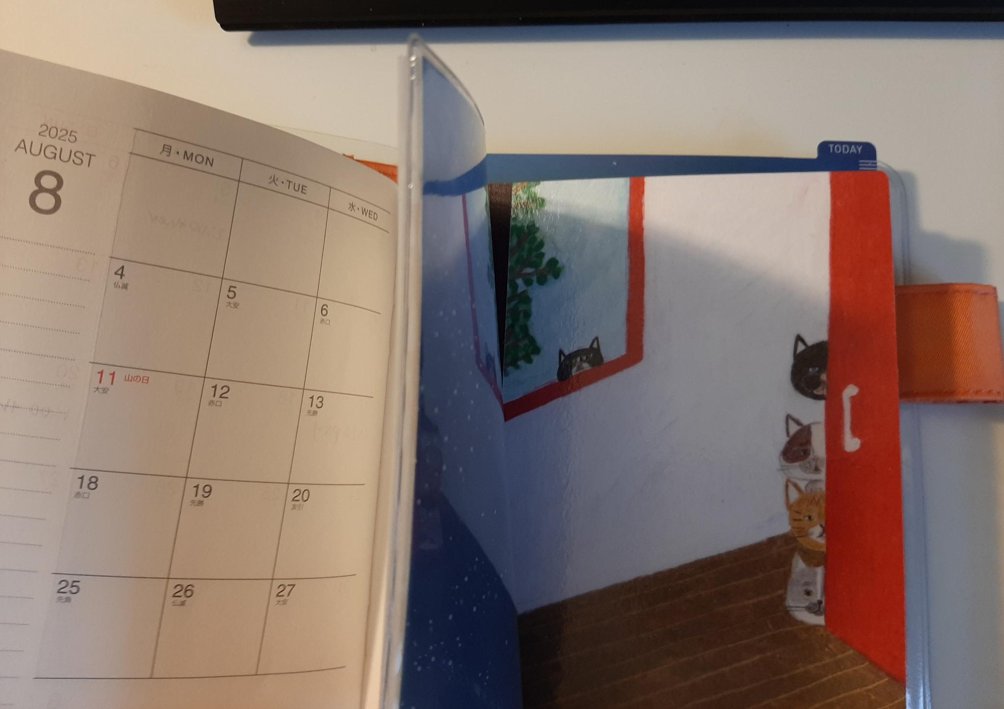 - Hobonichi blank grid notebook + Daiso calendar in Hobonichi cover (plus cover-on-cover)