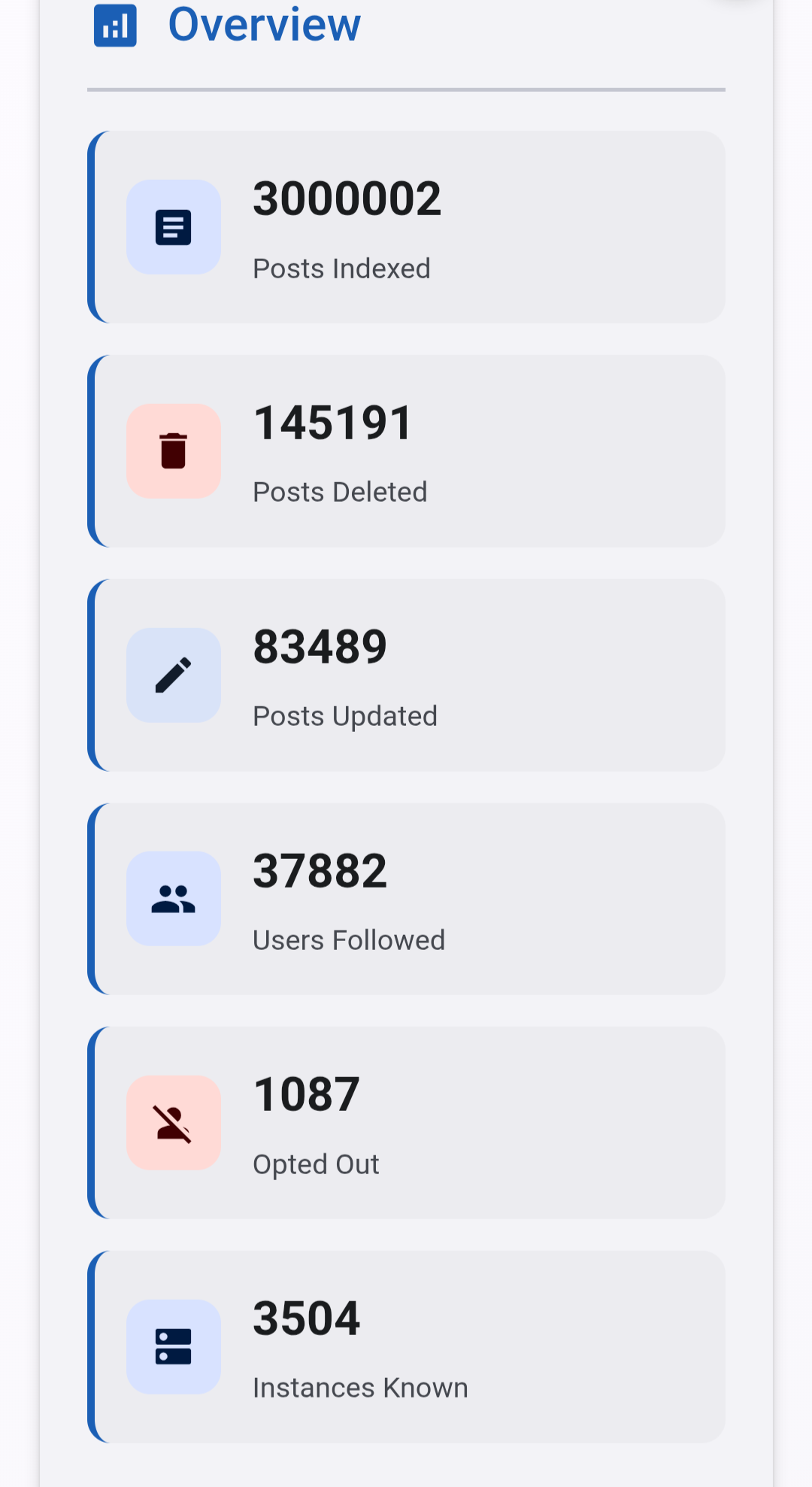 #HolosDiscover also has a script running in the background to detect instances that have blocked the actor or the domain. When an instance is identified, it is automatically blocked, which removes all indexed content from that instance. These instances are not displayed on the stats page.