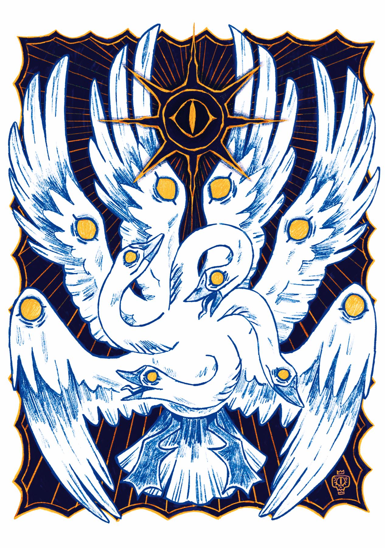 <p>Behold the Biblically Accurate Goose - All Hail The Goose!</p><p>Silly lil idea I had after a conversation with a friend. Because geese are for sure some sort of eldritch entity disguised as fowl to live among us haha <a href="/tags/mastoart/" rel="tag">#mastoart</a> <a href="/tags/illustration/" rel="tag">#illustration</a> <a href="/tags/art/" rel="tag">#art</a></p>