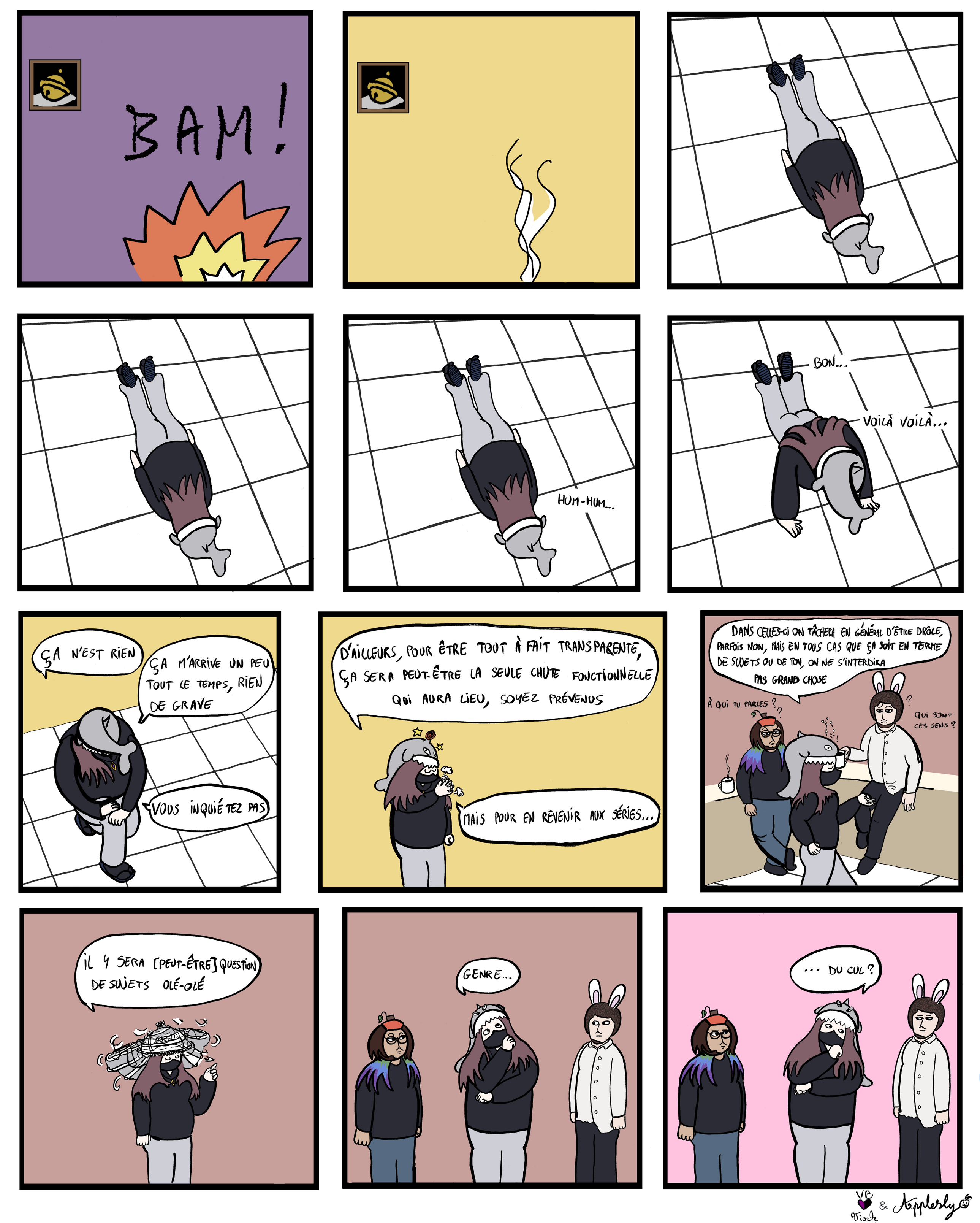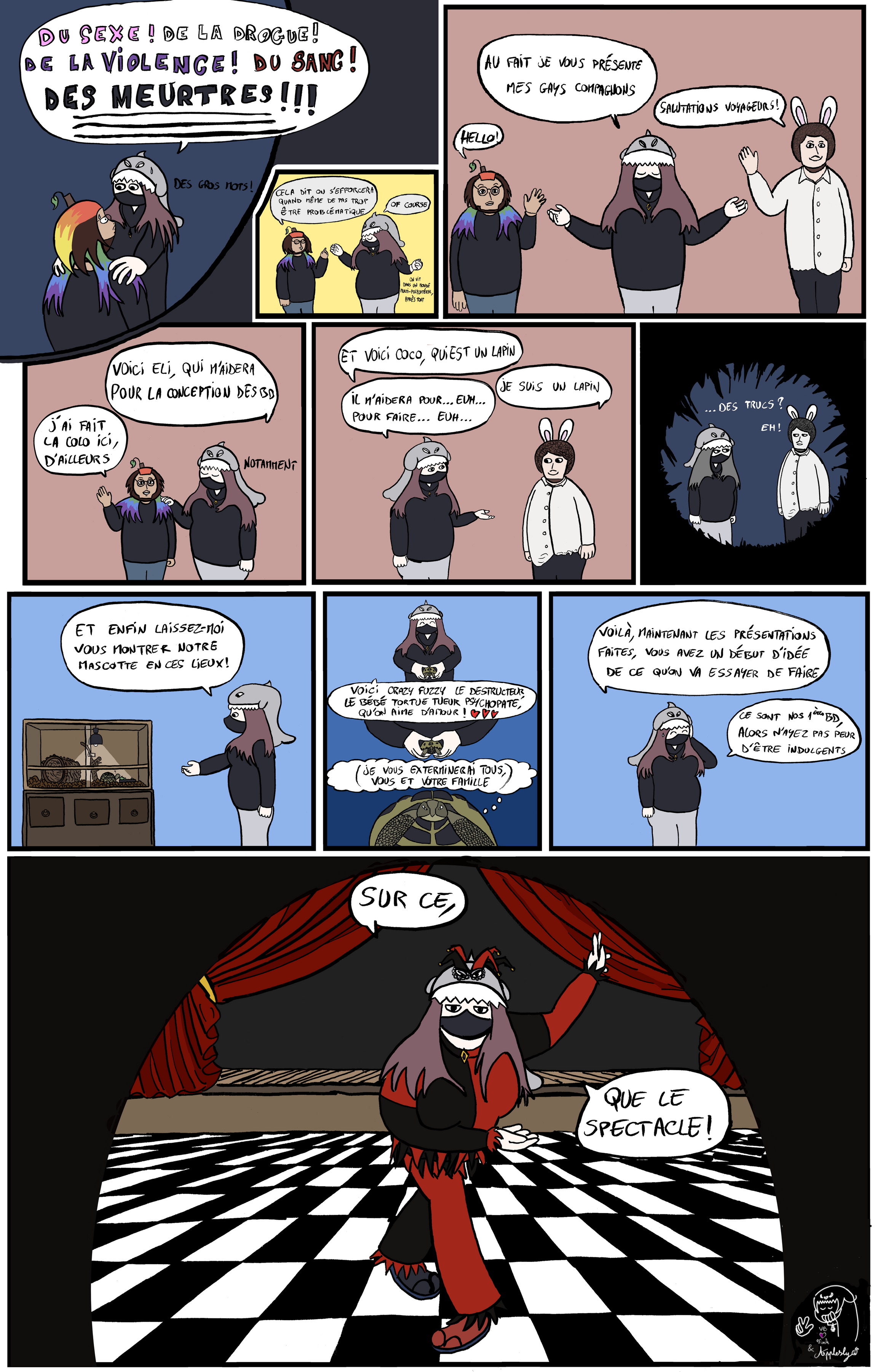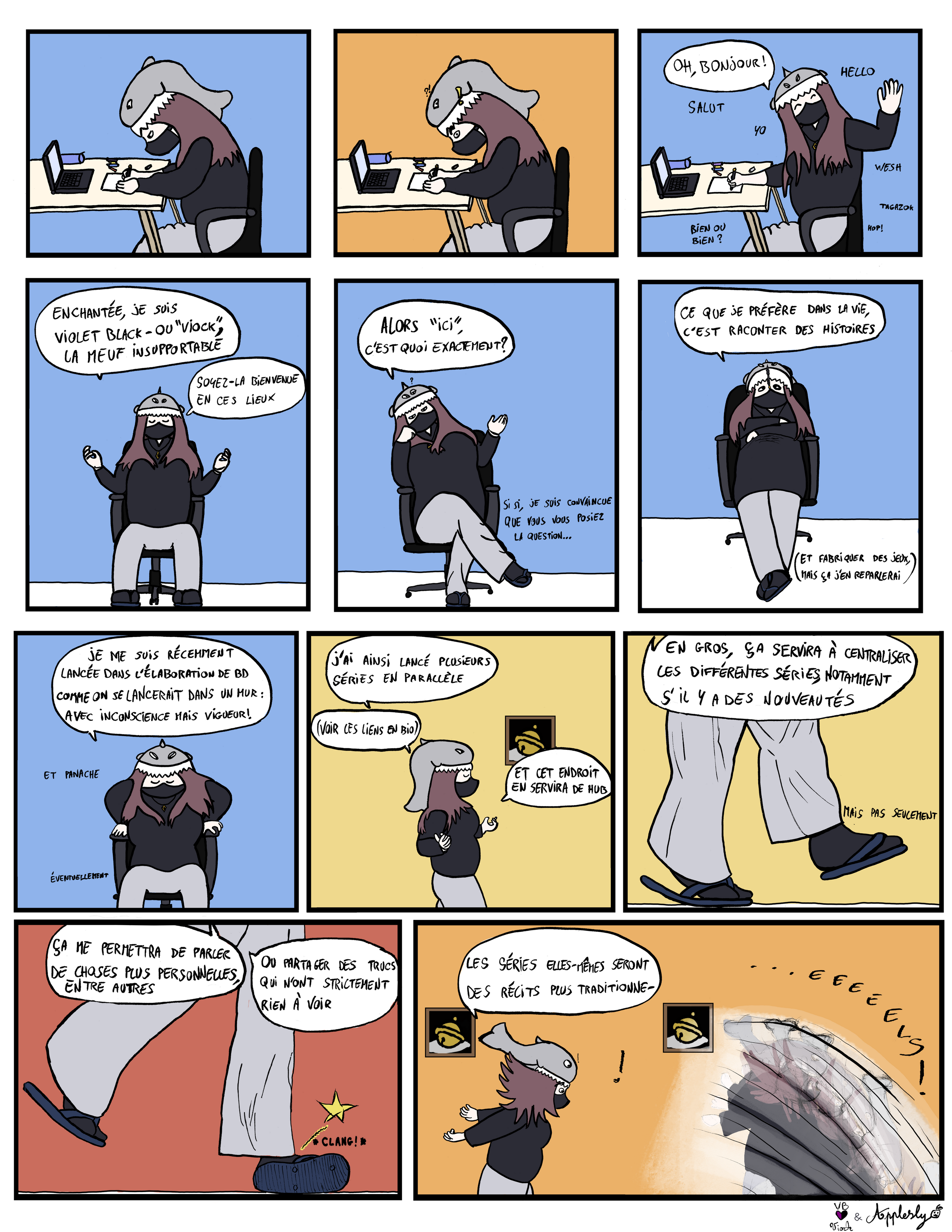 <p><a href="/tags/introduction/" rel="tag">#introduction</a> </p><p>Oyo;</p><p>je me représente viteuf depuis mon arrivée ici, parce que je me lance dans la BD; et que ça me paraissait pas mal de le communiquer ici.</p><p>7 ans et demi ont passé depuis (diantre, que le temps passe vite), j'ai pas mal bougé, je vais beaucoup mieux qu'à l'époque,et ce compte y a été pour beaucoup; avec parmi mes plus belles rencontres (j'vous aime les coupaings ♥).</p><p>Sinon pour me resituer très rapido, j'ai gagner aux bingos des lettres de la queeritudes et des difficultés psys, mais on fait avec.</p><p>Et tout de suite une petite présentation, en BD tant qu'à faire !</p><p>[Note : les alts de ces trois pages étant vachement trop longs, ils seront au post suivant]</p>