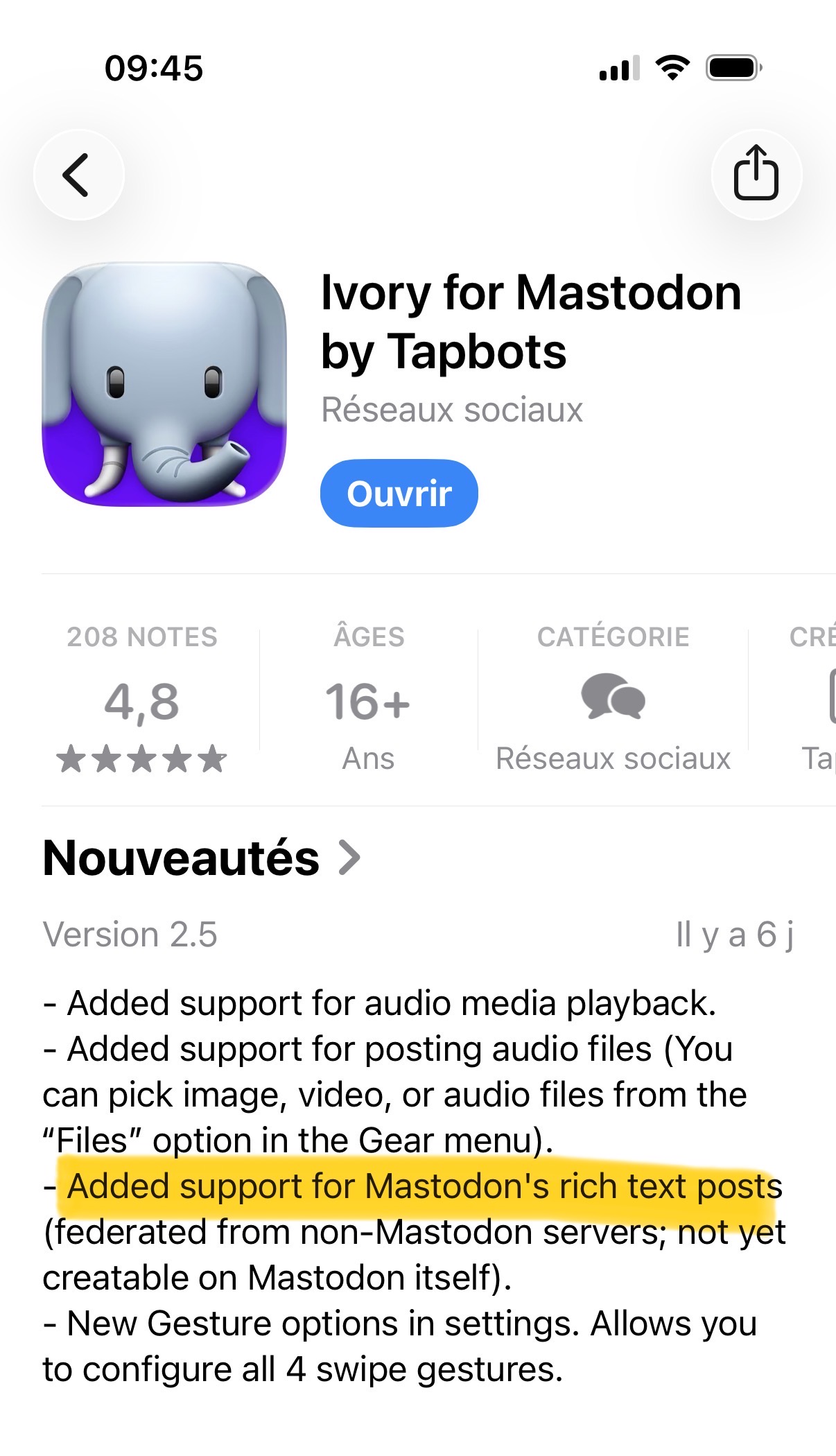 <p>But But But !!!! I just realized <a href="/tags/ivory/" rel="tag">#Ivory</a> for iOS have been updated on my iPhone and now supports… markdown 🎉</p><p>Thanks @[email protected]. You’re now my preferred iOS App for using <a href="/tags/gotosocial/" rel="tag">#GoToSocial</a> 😆</p>