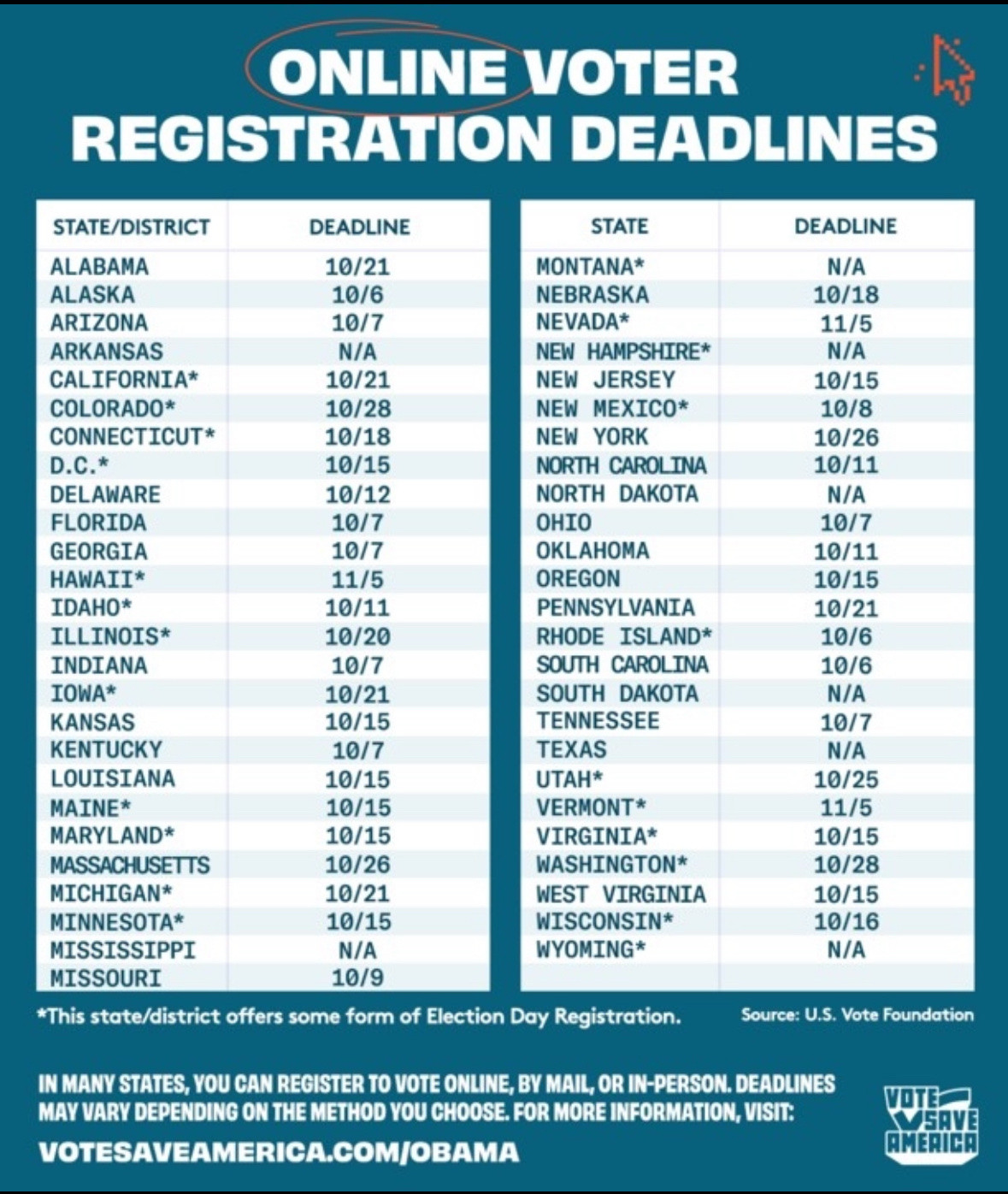 Check your voter registration deadlines, some are very early October: and boost this to all friends! #kamalaharris
