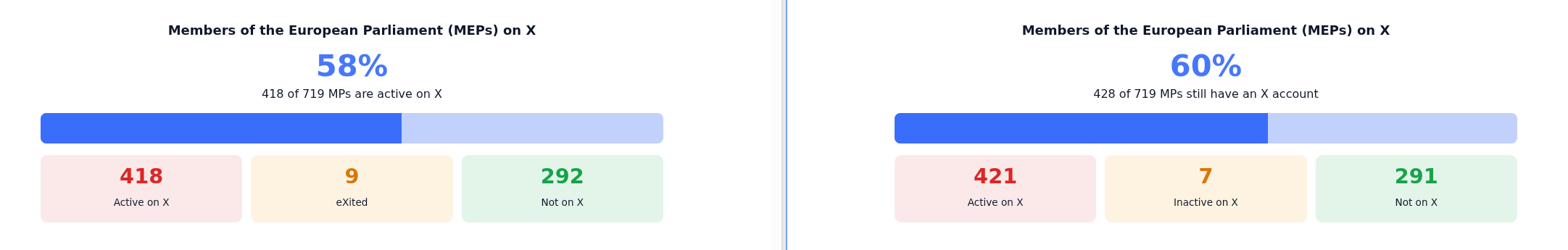 Thanks to @zollak, we updated the status of ten MEPs! Now, we have 421 more politicians to persuade to leave X, which is a decrease from 60% to 59%.