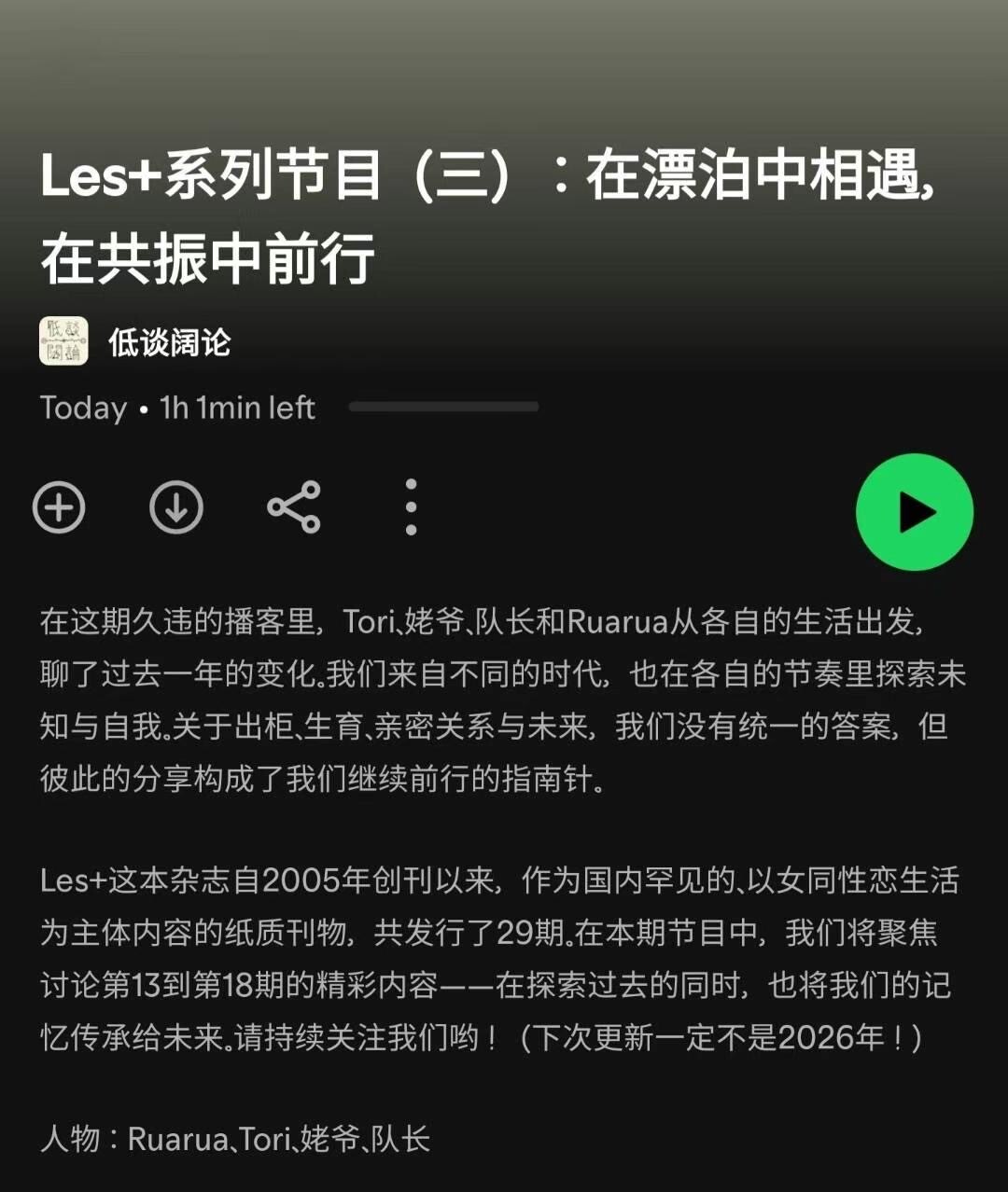 我们新一期有关“Les➕杂志”的播客上线啦!这次邀请到了中国首对拉拉婚礼当事人、“活化石”Tori和正在尝试运营本地社群的队长一起畅聊不同世代的感受。