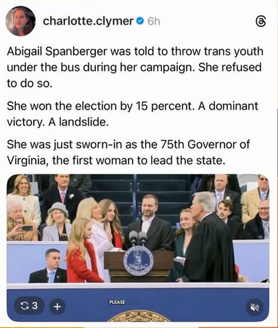 Abigail Spanberger gets it. Upon being sworn in she immediately issued an executive order requiring #Virginia police to stop cooperating with #ICE. She also refused to kiss Nazi boot on #trans rights.