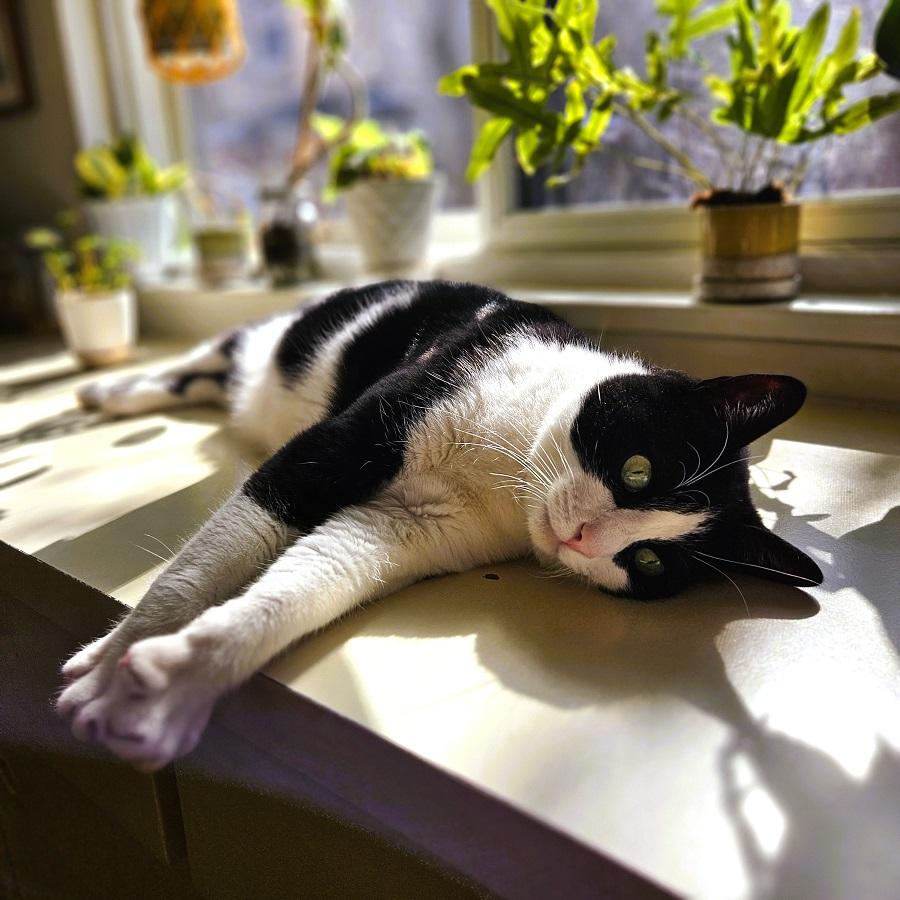 <p><a href="/tags/lordpercival/" rel="tag">#lordpercival</a> sunbathing in the kitchen. He's as happy as the <a href="/tags/houseplants/" rel="tag">#houseplants</a> getting much needed light as we come through the other side of winter. <a href="/tags/cats/" rel="tag">#cats</a> <a href="/tags/catsofmastodon/" rel="tag">#catsofMastodon</a> <a href="/tags/catsoffediverse/" rel="tag">#catsofFediverse</a> <a href="/tags/caturday/" rel="tag">#caturday</a> <a href="/tags/tuxedocat/" rel="tag">#tuxedocat</a></p>
