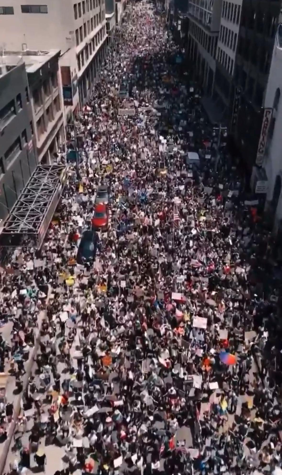 Millions protest his autoritarian power grab at thousands of events all across the country while the US president watches a low energy parade with a tiny audience, scowling. The event is sponsored by a weapons company and a crypto exchange. A right wing killer is on the loose.