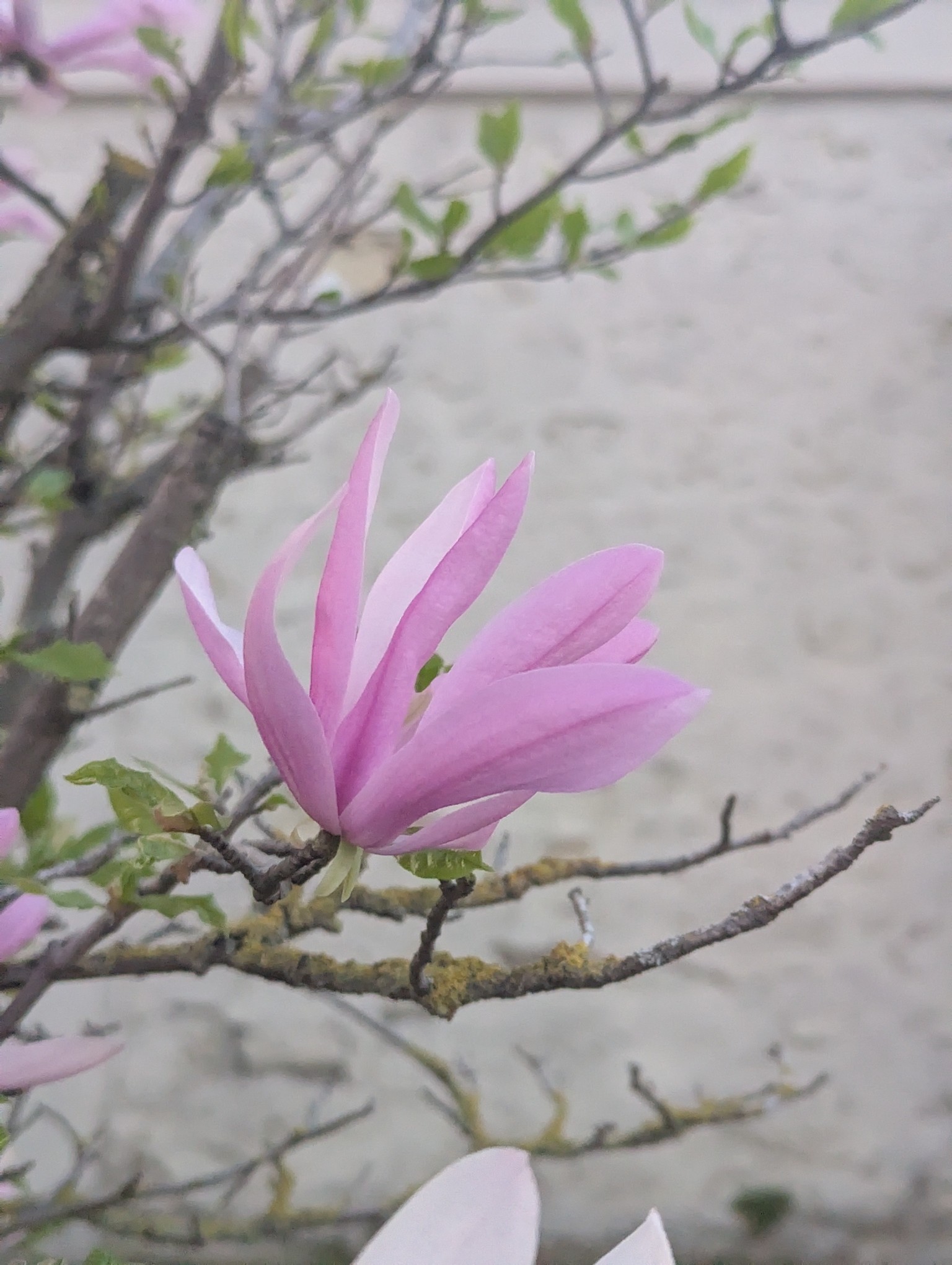 在牆角發現了一棵粉色的星花木蘭,好美啊!!