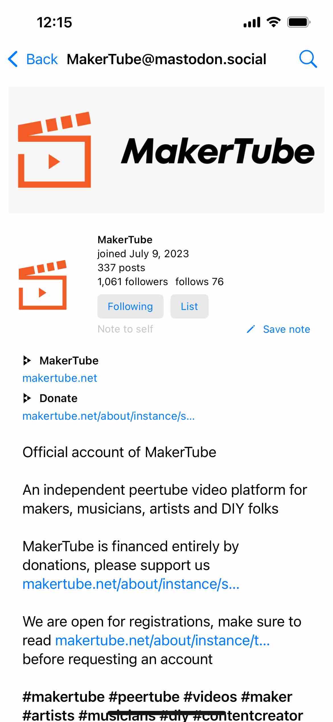 I just set up my own account on #MakerTube - so that I can write a guide that is accessible to many (as opposed to skipping this step and going straight to self-hosting).