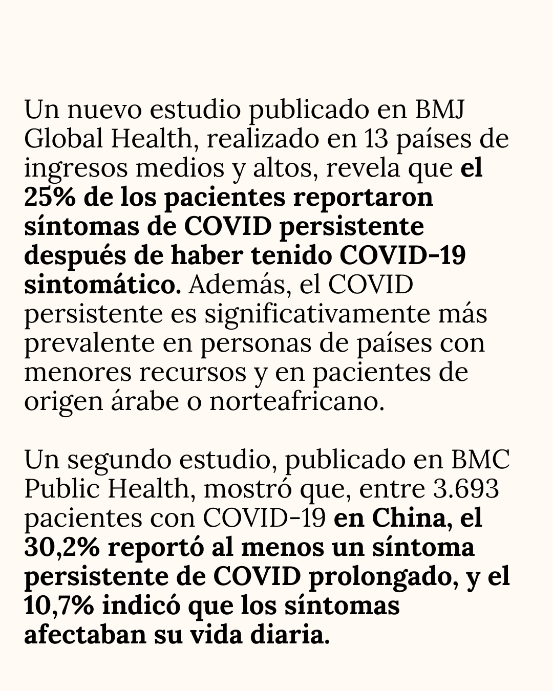 · Mínimo 10% de las infecciones acaban en COVID persistente.