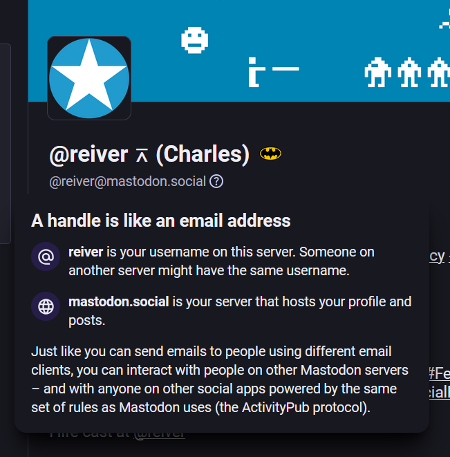<p>I noticed a new cirled question-mark icon next to my Fediverse address on my Mastodon account.</p><p>Tapping it exposed a pop-up.</p><p>It seems like it is a message to me.</p><p><a href="/tags/fediverse/" rel="tag">#Fediverse</a> <a href="/tags/fediverseux/" rel="tag">#FediverseUX</a> <a href="/tags/mastodon/" rel="tag">#Mastodon</a></p>