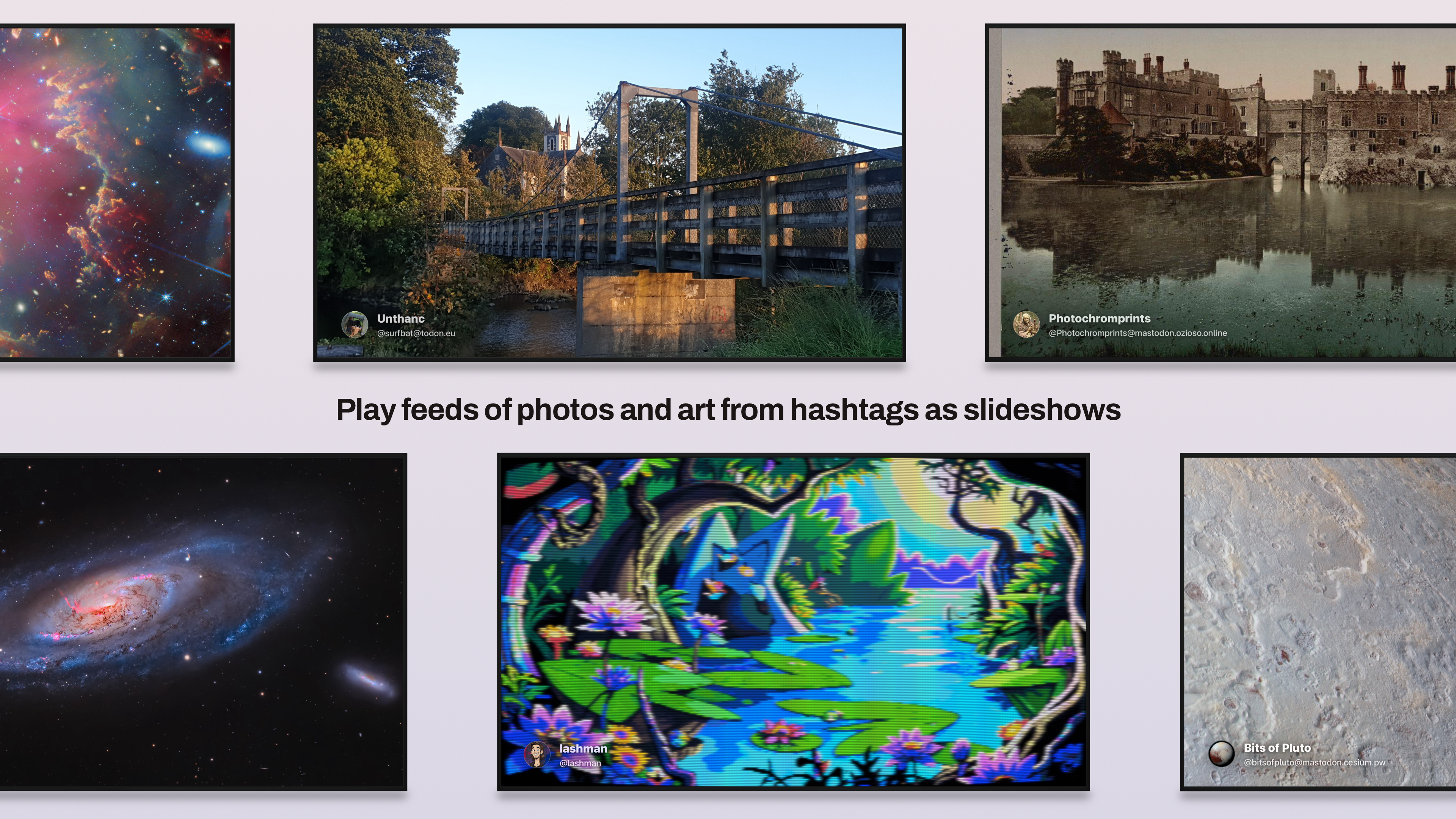 Add your favorite hashtags to Crystal to play slideshows of photos and art from across the fediverse. It’s a little like having Mastodon feeds as your screensaver.