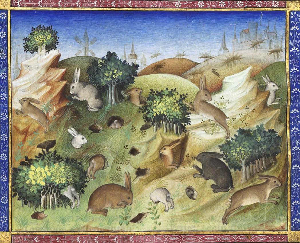 Rabbits. Gaston Phébus, Livre de la chasse, Paris 15th century. BnF, Français 616, fol. 26v.