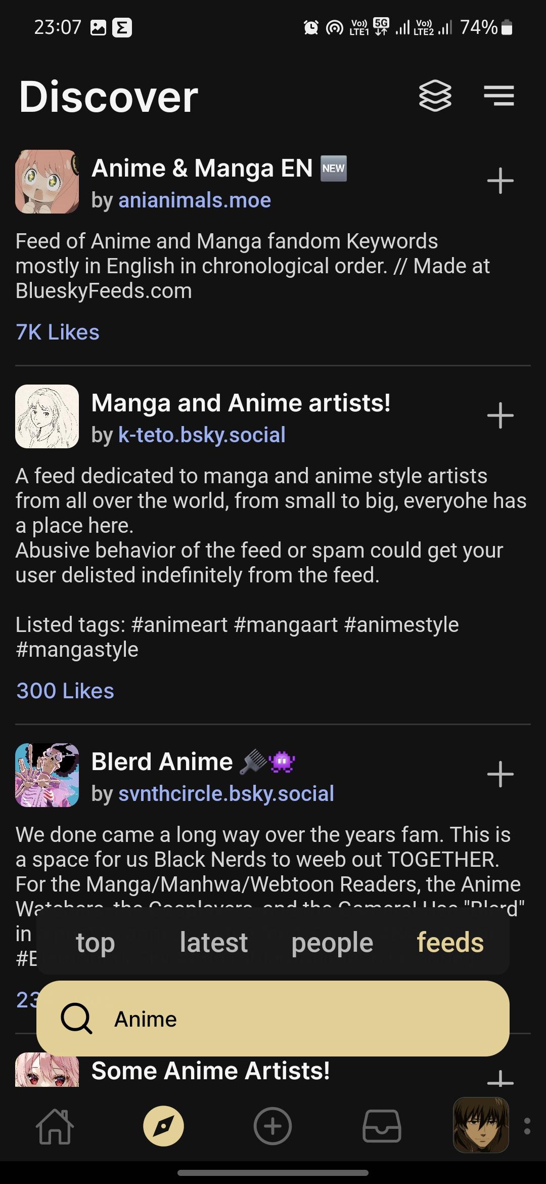 當前的聯邦宇宙沒有提供推薦內容,所以要尋找感興趣的內容請多利用左側的「探索」功能。點進去後在上方會顯示「精選」、「使用者」與「角色」。