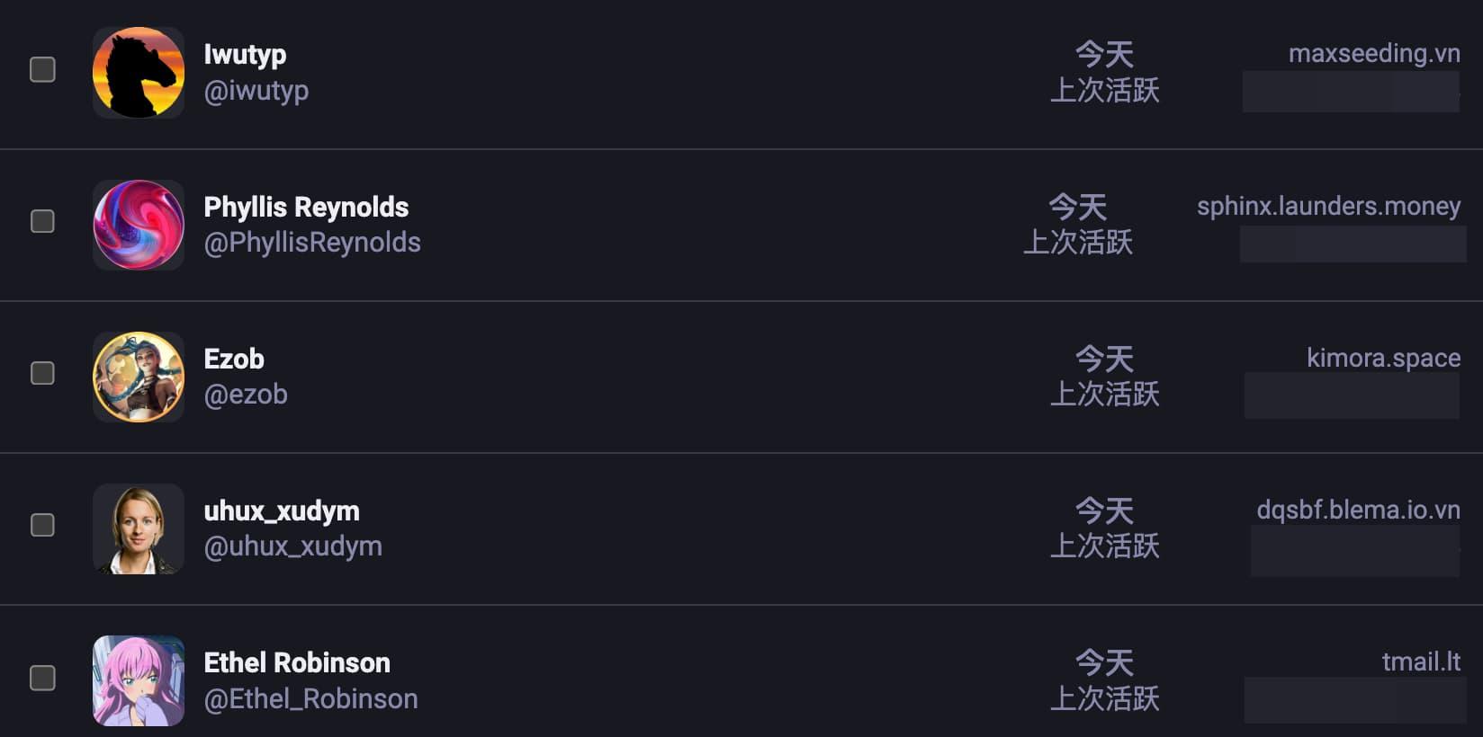 <p><a href="/tags/实例公告/" rel="tag">#实例公告</a> 封禁协同潜在的僵尸账户网络</p><p><p>今日检测并封禁了 5 个协同运作的僵尸账户</p></p><p>行为特征:</p><p>内容为 LLM 生成的无语义英文词句(虽然目前未做出实质性的危害,但是可能是为了养号,规避审查)<br>五个账户全部于2026年3月18日 17:52 — 2026年3月19日 23:50注册<br>账户Profile基本为:一段英文+emoji或者几段无意义英文句子<br>所有连接 IP 均属 Cloudflare 代理段<br>注册域名含一次性邮箱服务及高风险域名</p><p>已采取的措施:<br>封禁账户(经核查IP均为Cloudflare IP,未泄露任何用户隐私):<br>@iwutyp 162.159.XXX.XX<br>@PhyllisReynolds 172.70.XXX.XXX<br>@ezob 104.23.XXX.XX<br>@uhux_xudym 104.23.XXX.XX<br>@Ethel_Robinson 172.68.XXX.XXX<br>封禁邮箱:<br>tmail.lt、maxseeding.vn、dqsbf.blema.io.vn、sphinx.launders.money、kimora.space</p><p>总结:<br>由于前段时间为了简化注册流程,关闭了人工审核<br>将开启“注册时需要批准”+“注册时需要提供理由”<br>如果大家有发现类似行为特征的新账户,相同邮箱域名/IP请谨慎辨别<br>本实例不欢迎任何恶意/不受管制的机器人注册</p><p><a href="/tags/mastodon/" rel="tag">#mastodon</a> <a href="/tags/fediverse/" rel="tag">#fediverse</a> <a href="/tags/antispam/" rel="tag">#antispam</a> <a href="/tags/spam/" rel="tag">#spam</a> <a href="/tags/实例管理/" rel="tag">#实例管理</a> <a href="/tags/moderation/" rel="tag">#moderation</a></p>