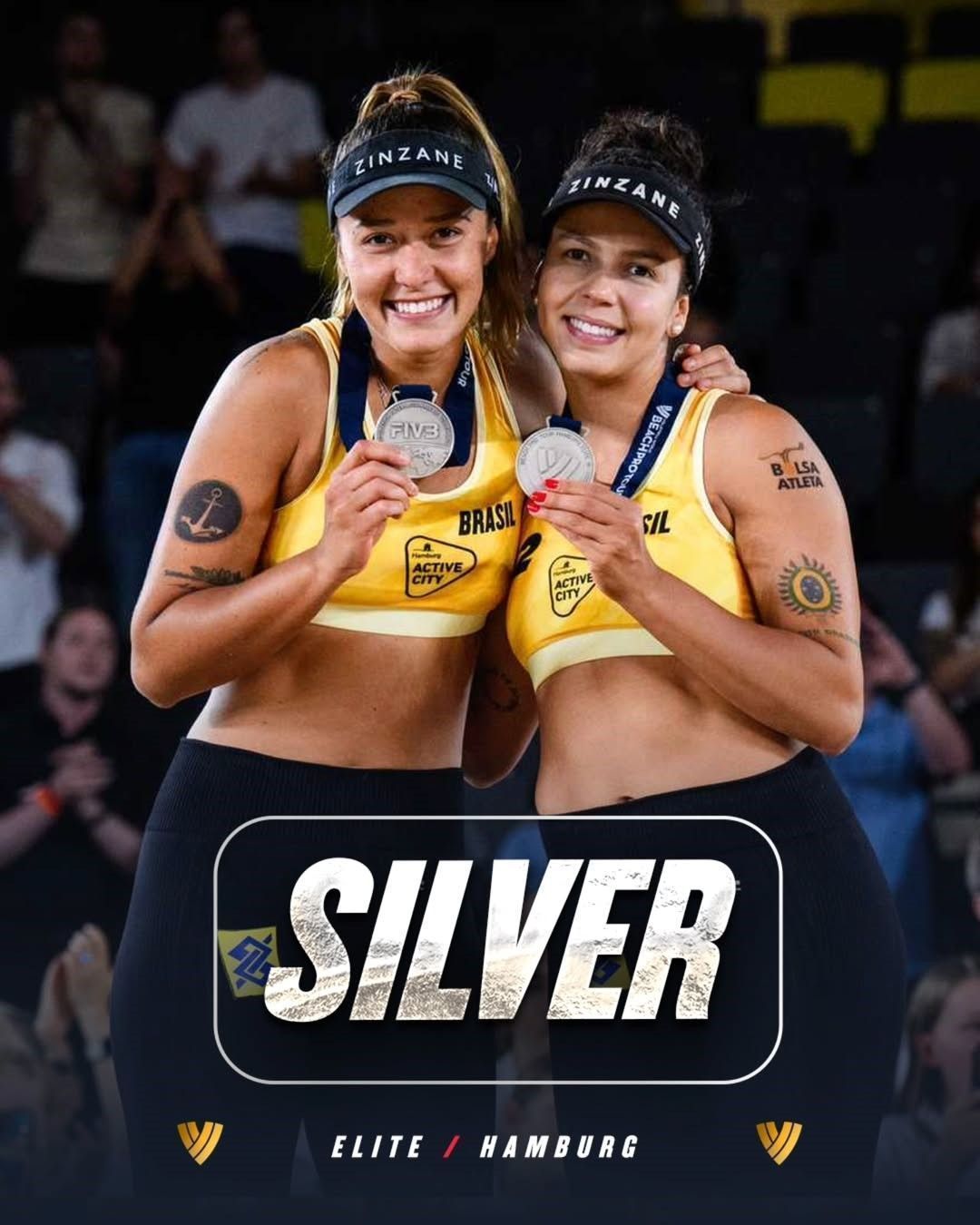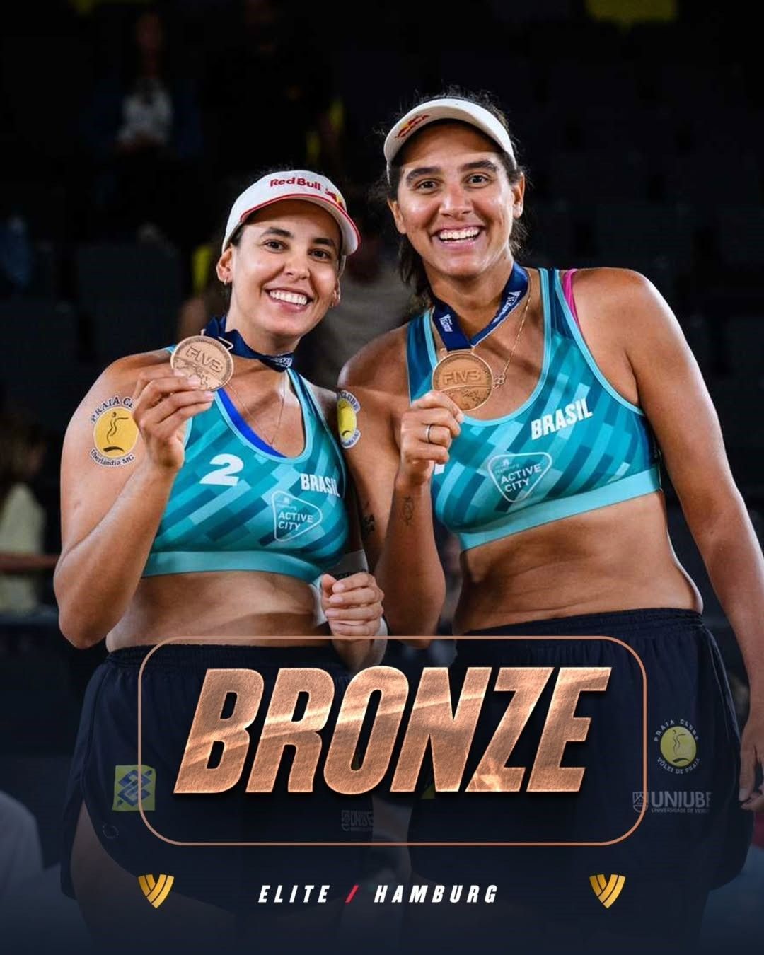 Tem Brasil em peso na briga por medalhas na etapa Elite de Hamburgo 🇩🇪 do Circuito Mundial de vôlei de praia.