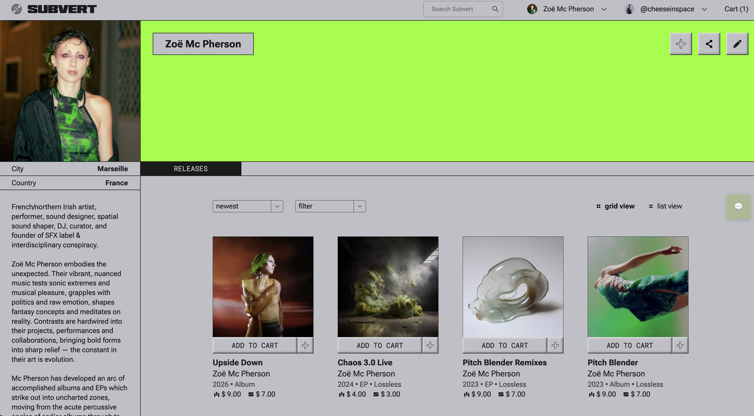 <p>The new <a href="/tags/mastodon/" rel="tag">#Mastodon</a> but for <a href="/tags/music/" rel="tag">#music</a> <a href="/tags/subvert/" rel="tag">#Subvert</a> is in now in testing alpha mode.. Just made my page here <a href="https://alpha.subvert.fm/zoe-mc-pherson" rel="nofollow" class="ellipsis" title="alpha.subvert.fm/zoe-mc-pherson"><span class="invisible">https://</span><span class="ellipsis">alpha.subvert.fm/zoe-mc-pherso</span><span class="invisible">n</span></a><br>Make yours or come join. Can't wait to go dig what yall uploaded!</p>