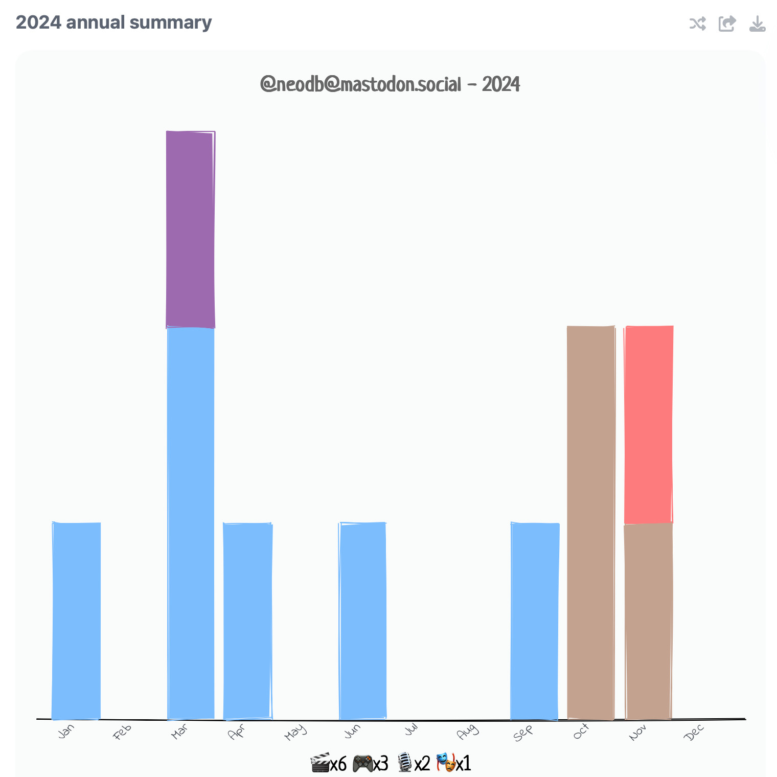 🎄 年终总结图也可以分享到Bluesky(提示:如果之前漏标了,可以设置日期补标,也可以导入豆瓣/Goodreads/Letterboxd)