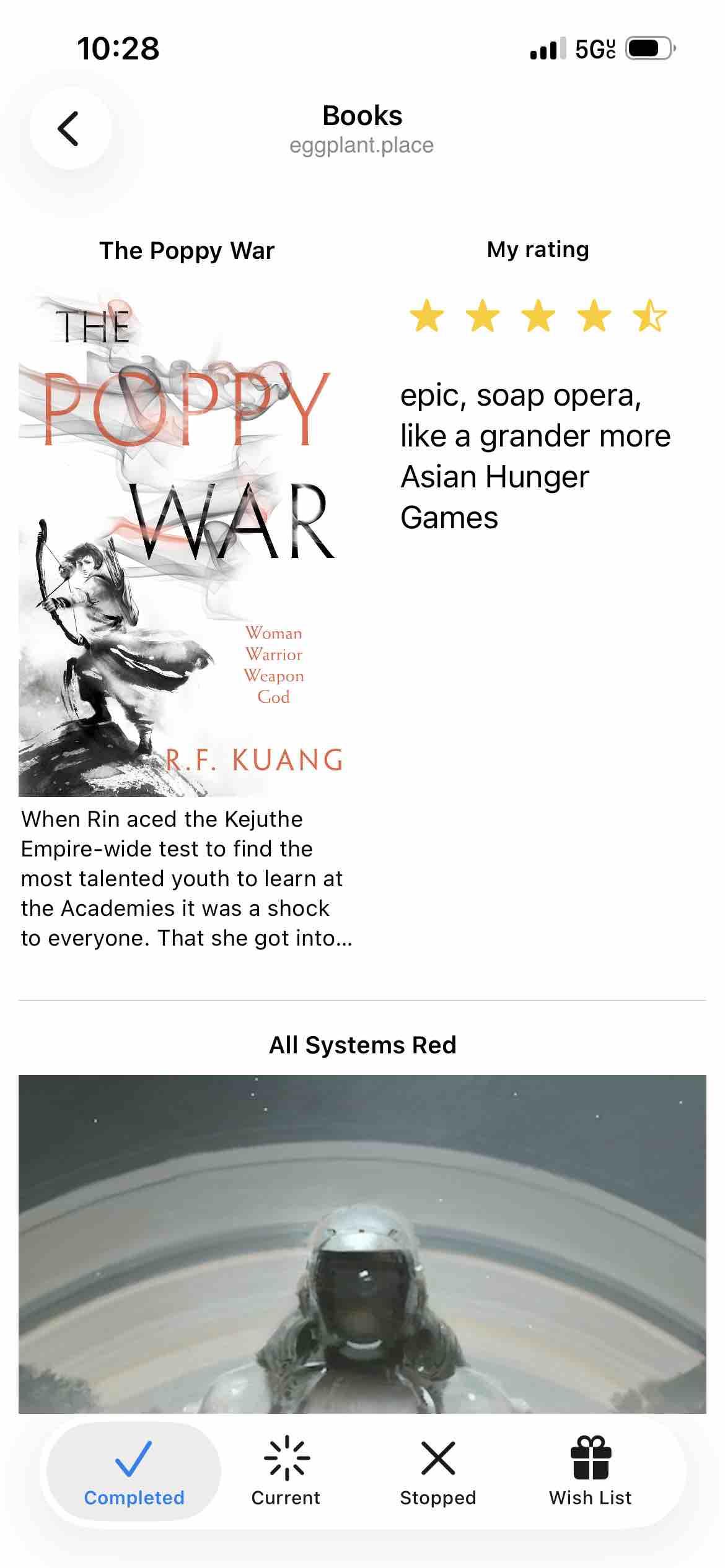 now displaying #NeoDB shelf comments and ratings (still have to add a way to enter that stuff)