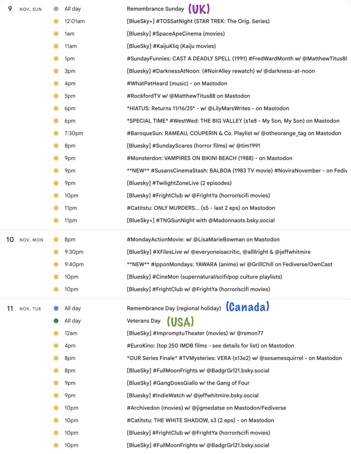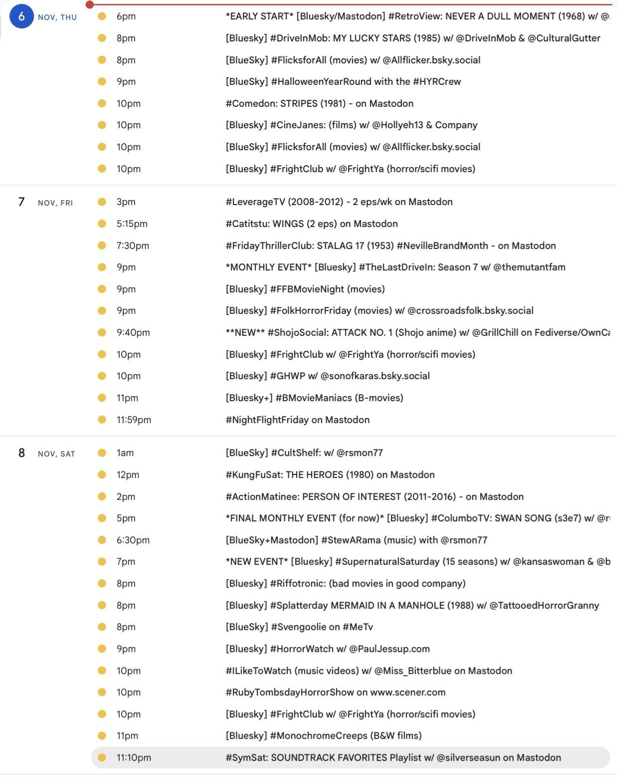 📺It's the weekly THU-THU🐘 #Mastodon/ #Fediverse #WatchPartyCalendar 📅 for Nov. 13-20, 2025