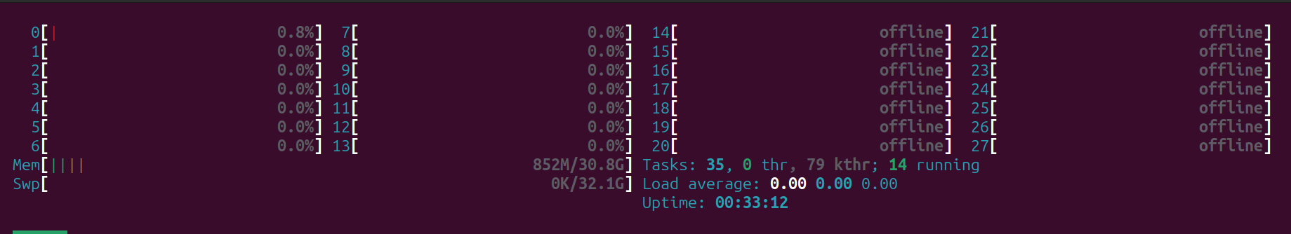 The first thing I notice is only 14 of the 28 cores are active.
