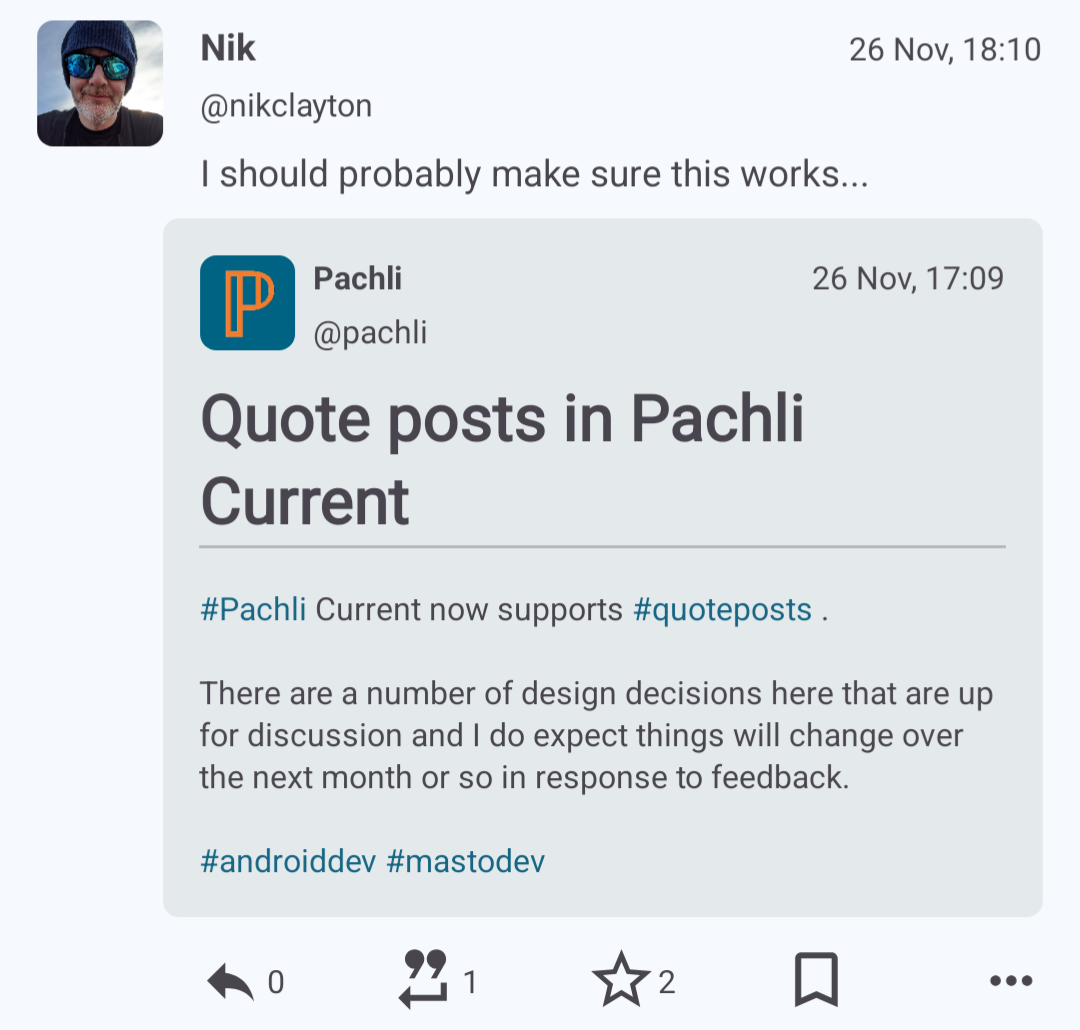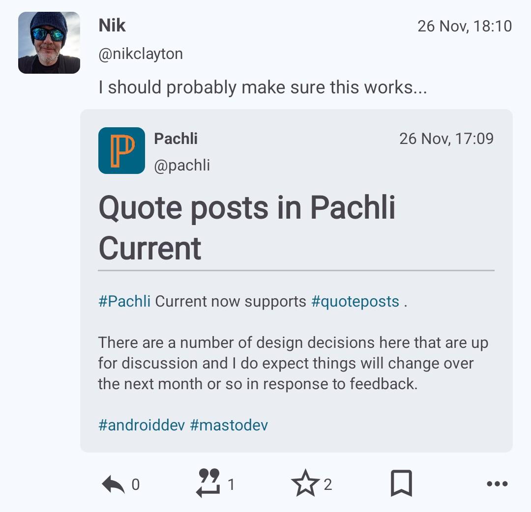Details, including screenshots, open questions, and the best way to provide feedback, are all at https://pachli.app/pachli/2025/11/13/quote-posts.html?utm_medium=social&utm_source=mastodon&utm_campaign=quote-posts-1.