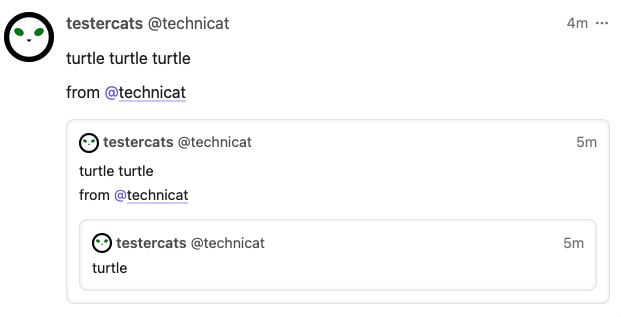 #Hollo finally has #Misskey/#Threads-style quotes! It's easy to use. Just paste the link to the post you want to quote into your post! It will automatically recognize a link to an ActivityPub post (supports Article, Note, and Question) and turn it into a quote.