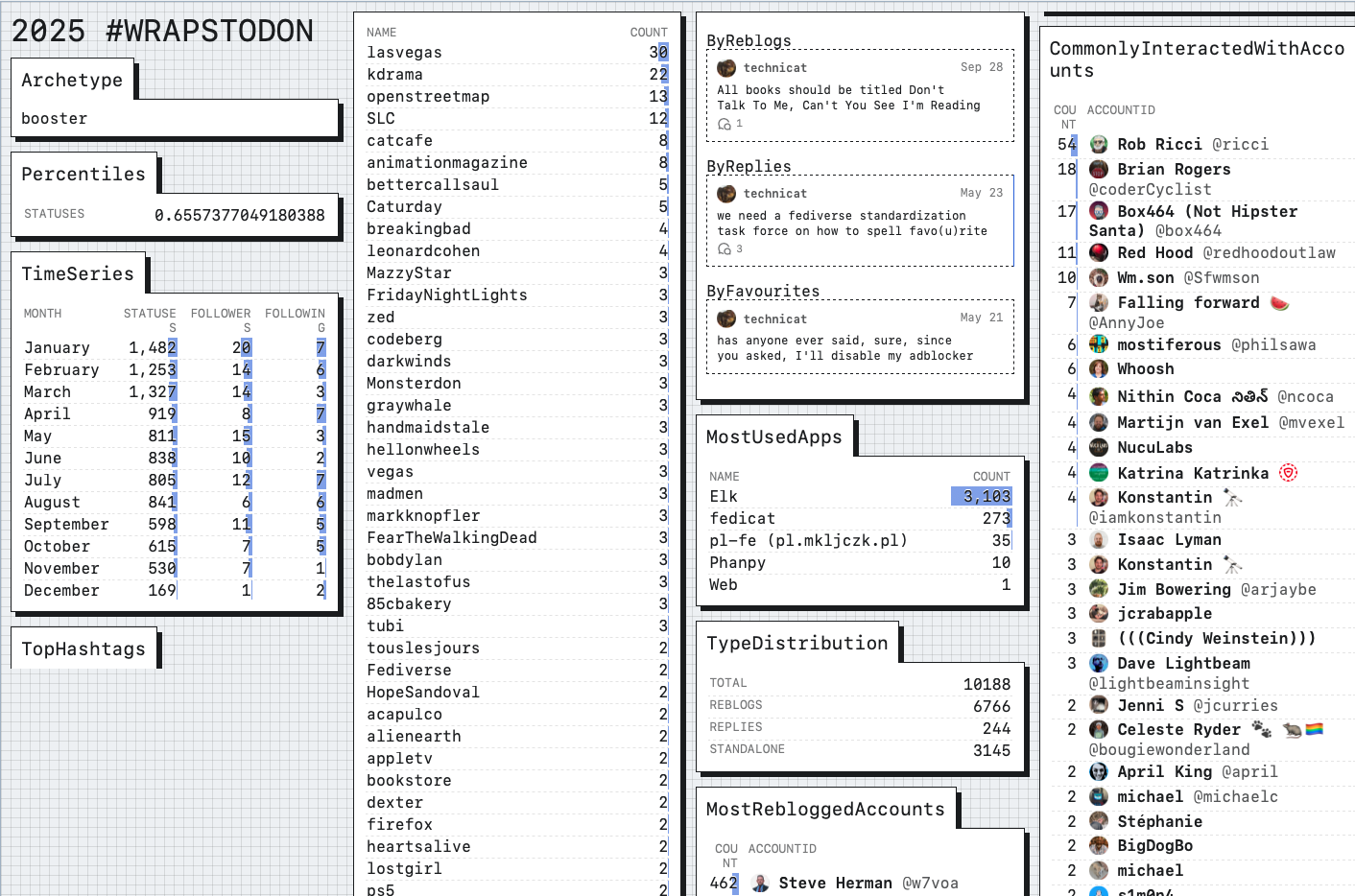 Since Wrapstodon isn't a feature easily enabled and available for every instance, I am super happy about @phanpy's neat 'Year in Posts' overview. So cool to look at! 🤓