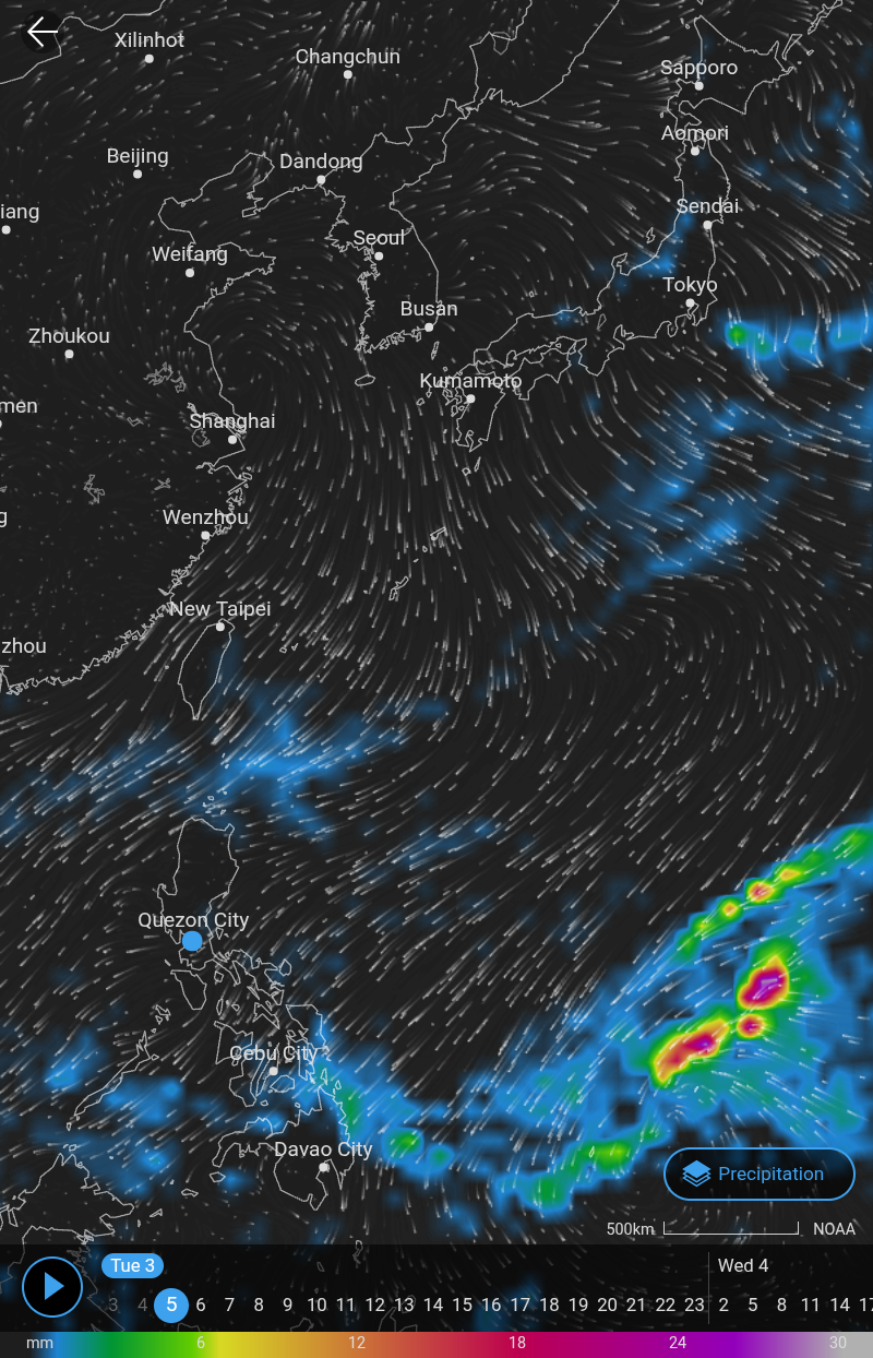 The current weather and temperature in the #Philippines. It's 24โ today, 2026-02-03 05:00 UTC+8, but next week it will be 21โ. Keep the Amihan (Northeast Monsoon) strong! Keep those cold winter air from Korea and Japan blowing our way! The next ten months will be 35โ40โ.