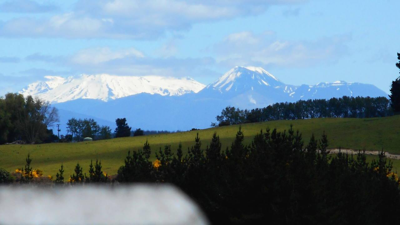 The three volcanoes that rumble in the heart of New Zealand's North Island, seen from the Craters of the Moon thermal walkway at Wairakei (~38°38'36.6"S 176°04'05.9"E).