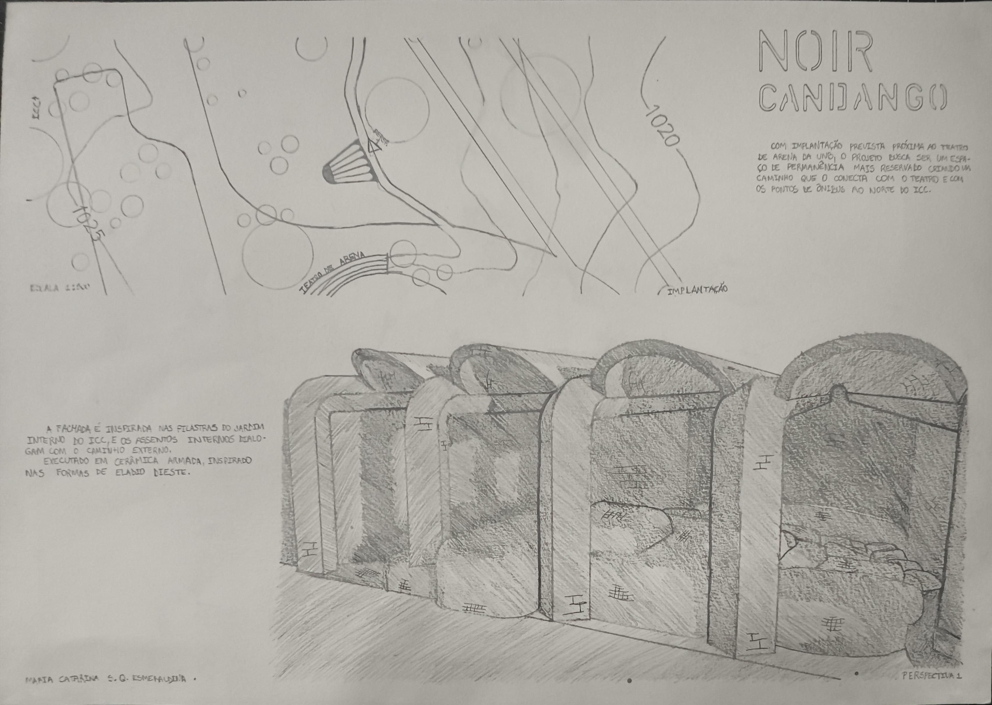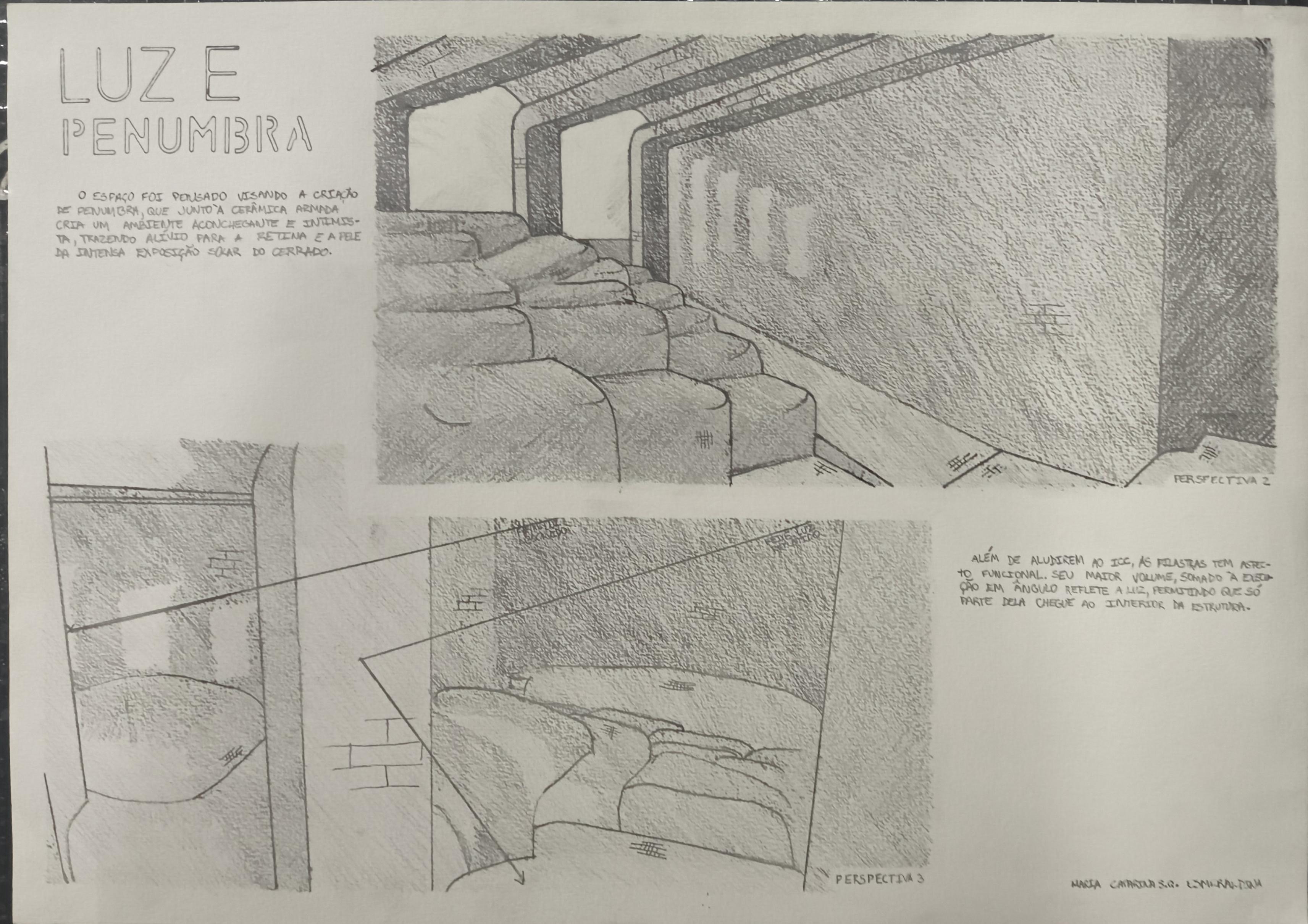 Também é meu primeiro projeto em #ceramicaarmada - Um espaço de permanência que abriga transeuntes do intenso calor do cerrado próximo ao ICC da UnB, que tem seu átrio central aludido na forma da fachada do projeto.