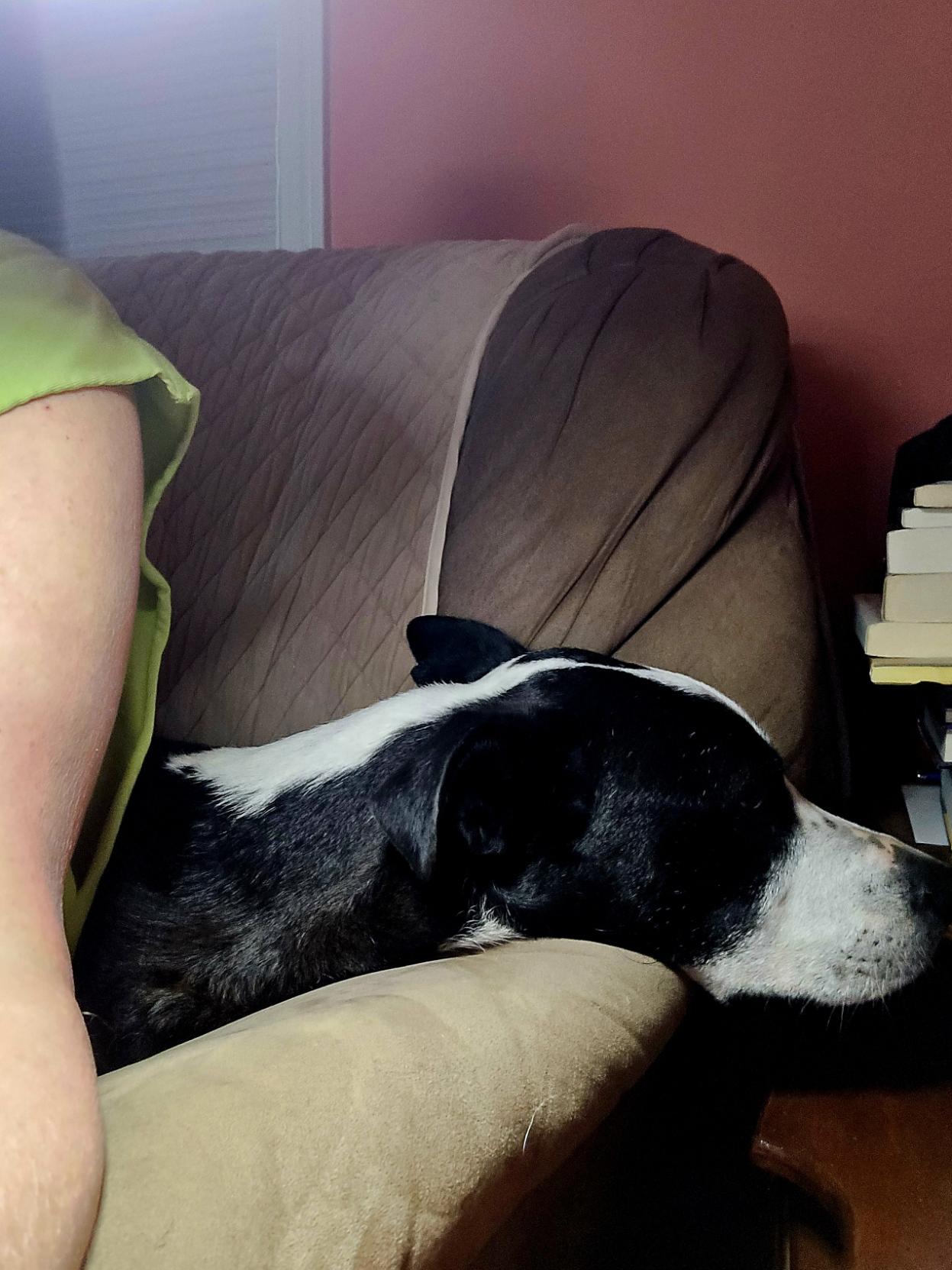 <p>"The man who came in from the cold," has become "The dog who got away from his relentless sister by hiding behind the reader in the chair." Less catchy, but more significant. <a href="/tags/dogs/" rel="tag">#Dogs</a> <a href="/tags/dogsofmastodon/" rel="tag">#DogsOfMastodon</a> <a href="/tags/reading/" rel="tag">#Reading</a></p>