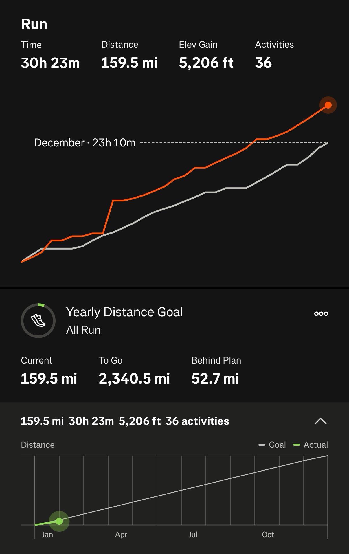 I’m 52.7 mi *behind* my 2,500mi yearly goal, but I’m bouncing back! Come in March I have half and full #marathon races ahead. Onward!