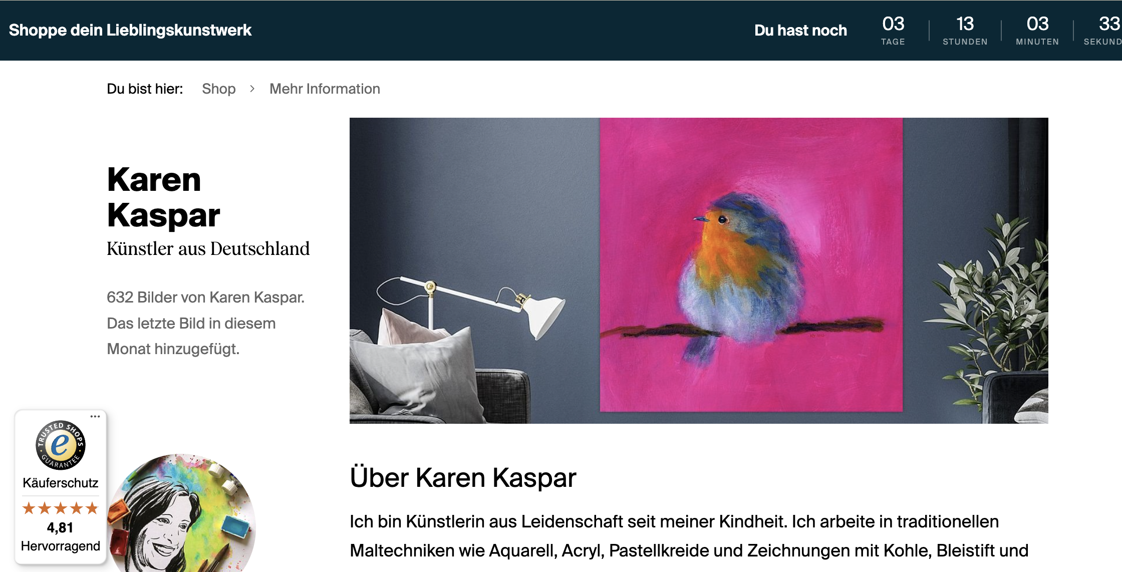 <p>Psst - bei Art Heroes gibt es bis Sonntag 10% Rabatt auf alles!</p><p>Schau doch einfach mal in meinem Shop dort vorbei!</p><p>Ich würde mich freuen! </p><p>--> <a href="https://karenkaspar.artheroes.de/" rel="nofollow"><span class="invisible">https://</span>karenkaspar.artheroes.de/</a></p><p><a href="/tags/art/" rel="tag">#art</a> <a href="/tags/cats/" rel="tag">#cats</a> <a href="/tags/birds/" rel="tag">#birds</a> <a href="/tags/painting/" rel="tag">#painting</a> <a href="/tags/nature/" rel="tag">#nature</a> <a href="/tags/watercolor/" rel="tag">#watercolor</a> <a href="/tags/giftideas/" rel="tag">#giftideas</a> <a href="/tags/flowers/" rel="tag">#flowers</a> <a href="/tags/supportsmallbusiness/" rel="tag">#SupportSmallBusiness</a> <a href="/tags/gifts/" rel="tag">#gifts</a> <a href="/tags/fedigiftshop/" rel="tag">#fediGiftShop</a> <a href="/tags/shamelessselfpromotion/" rel="tag">#shamelessSelfPromotion</a> <a href="/tags/sale/" rel="tag">#sale</a></p>