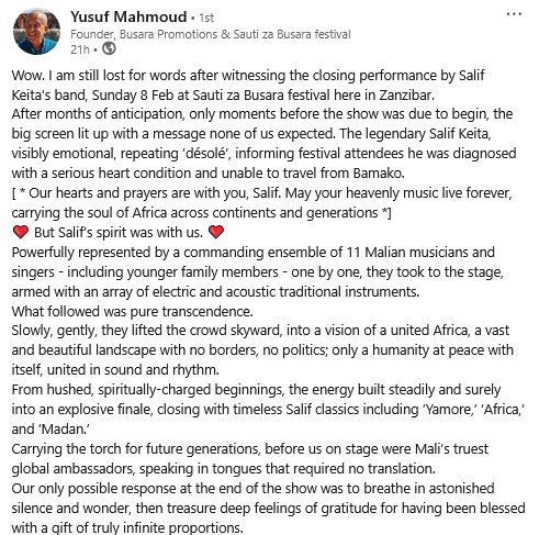 From the album Mandjou (1978) with the young Salif Keita and his fantastic voice. With Kante Manfila, Cissoko Moussa, Ousmane Kouyate and Sekou Diabate.