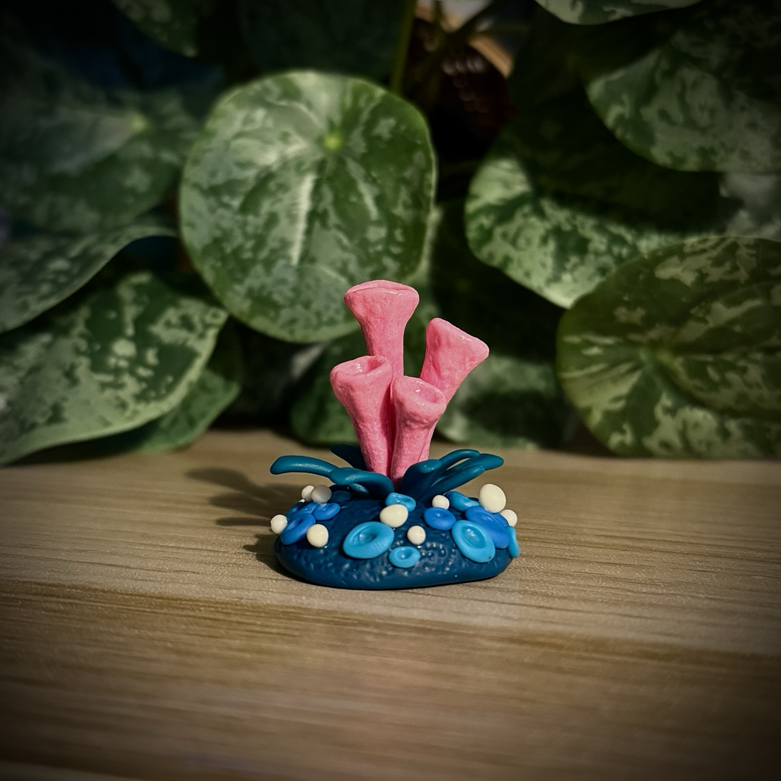 Made another little sculpture, this time to test the pink phosphorescent paint. (Which looks orange in the dark but that doesn’t make it any less magical. :’D)