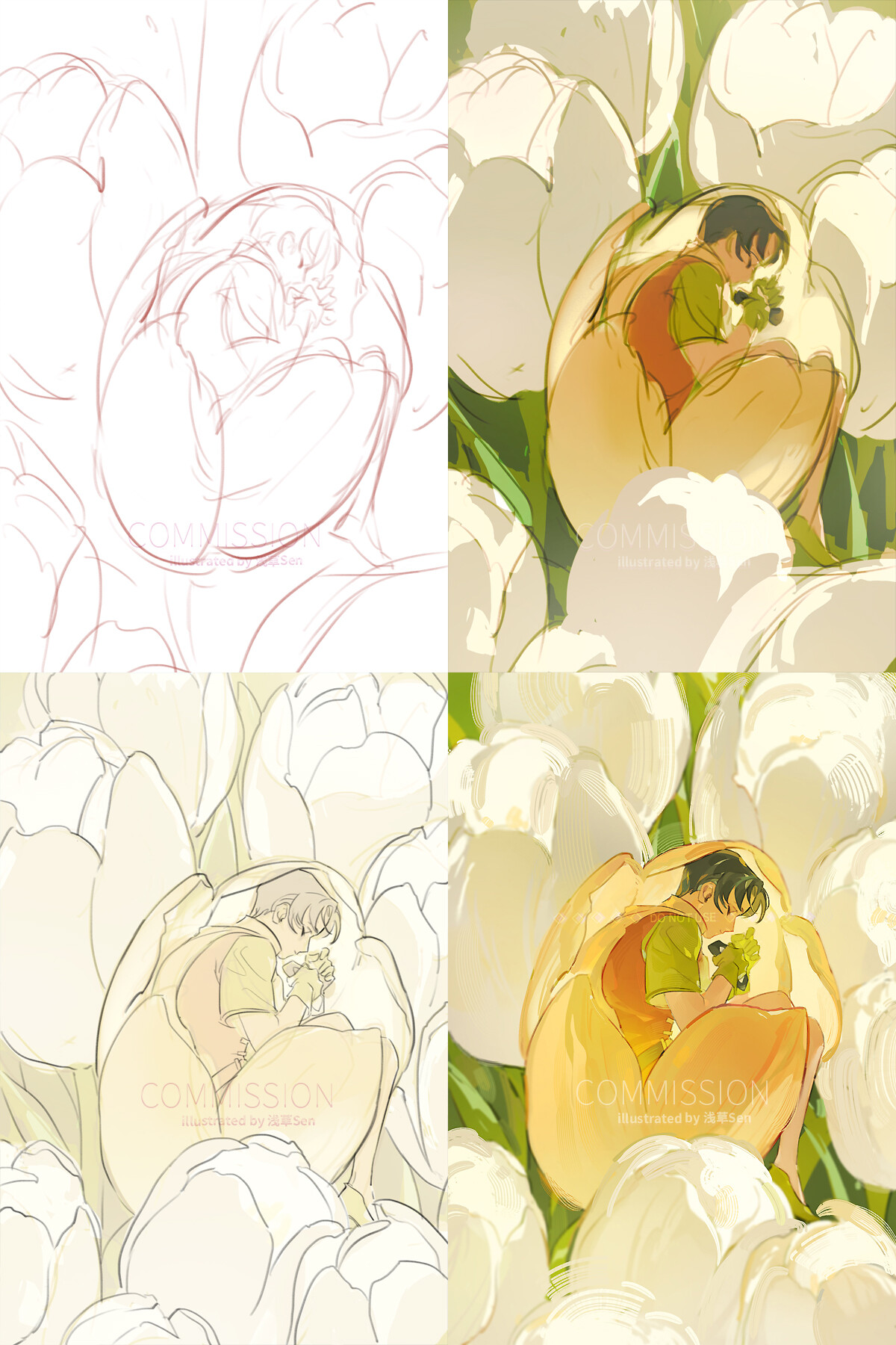 🌸 不习惯走线下的可以走米画师的企划邀请(米画师ID:浅草Sen)