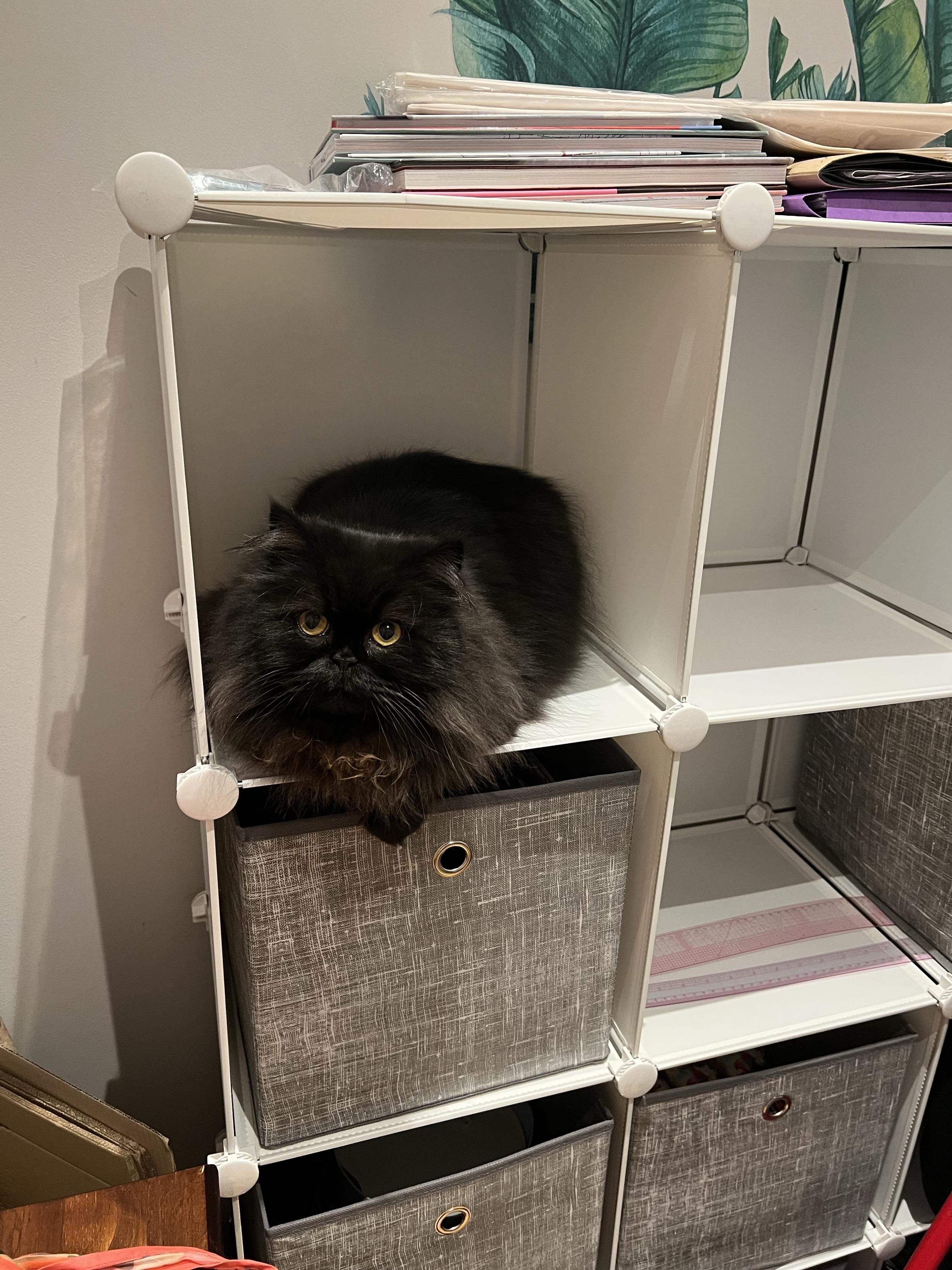 <p>You know, this space is usually occupied by my <a href="/tags/sewing/" rel="tag">#sewing</a> supplies. Right now these are spread around my office and Akira made it his new sleeping spot 😂</p><p><a href="/tags/catsofmastodon/" rel="tag">#CatsOfMastodon</a></p>