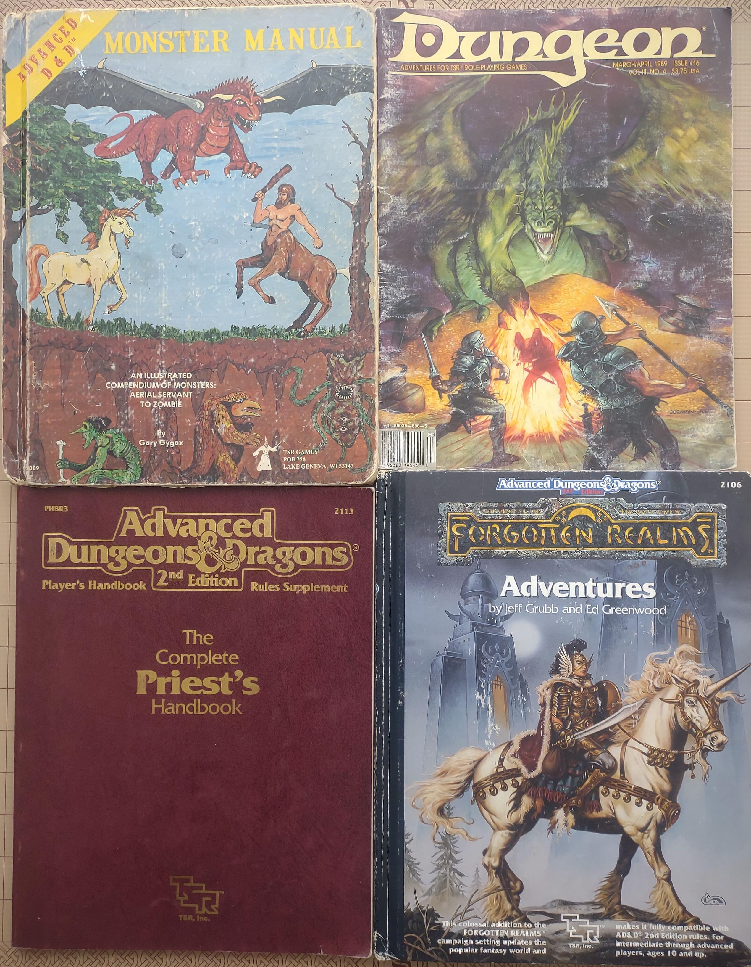 I have some new items in stock! Dungeon Magazines, filled with adventure, two Complete books for AD&D 2e, and a very well-loved DM's Screen.