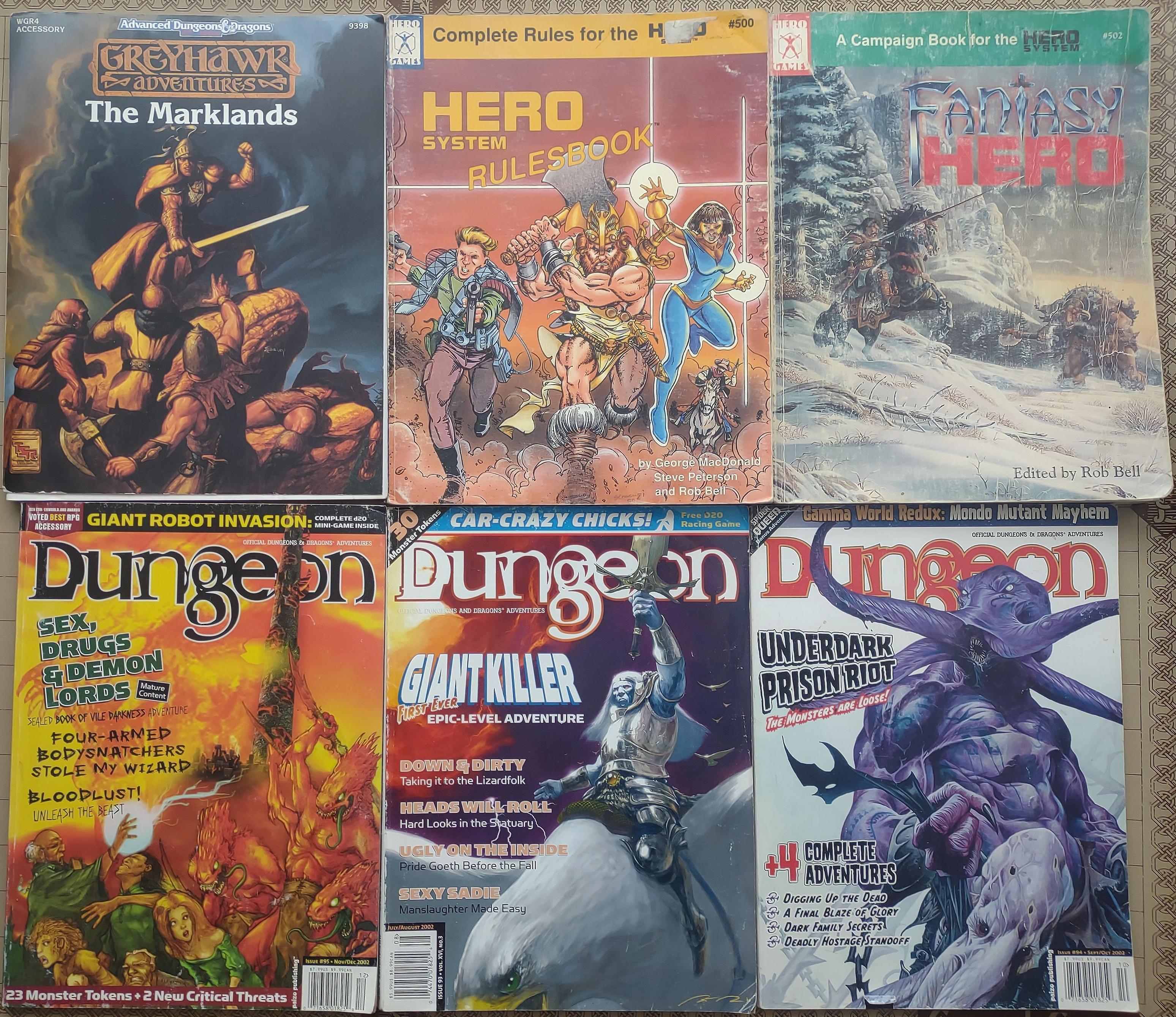 New items in the Etsy Shop today! More Hero System goodness, some fantastic Dungeon Magazines for 3e, and a guide to the Marklands for Greyhawk.